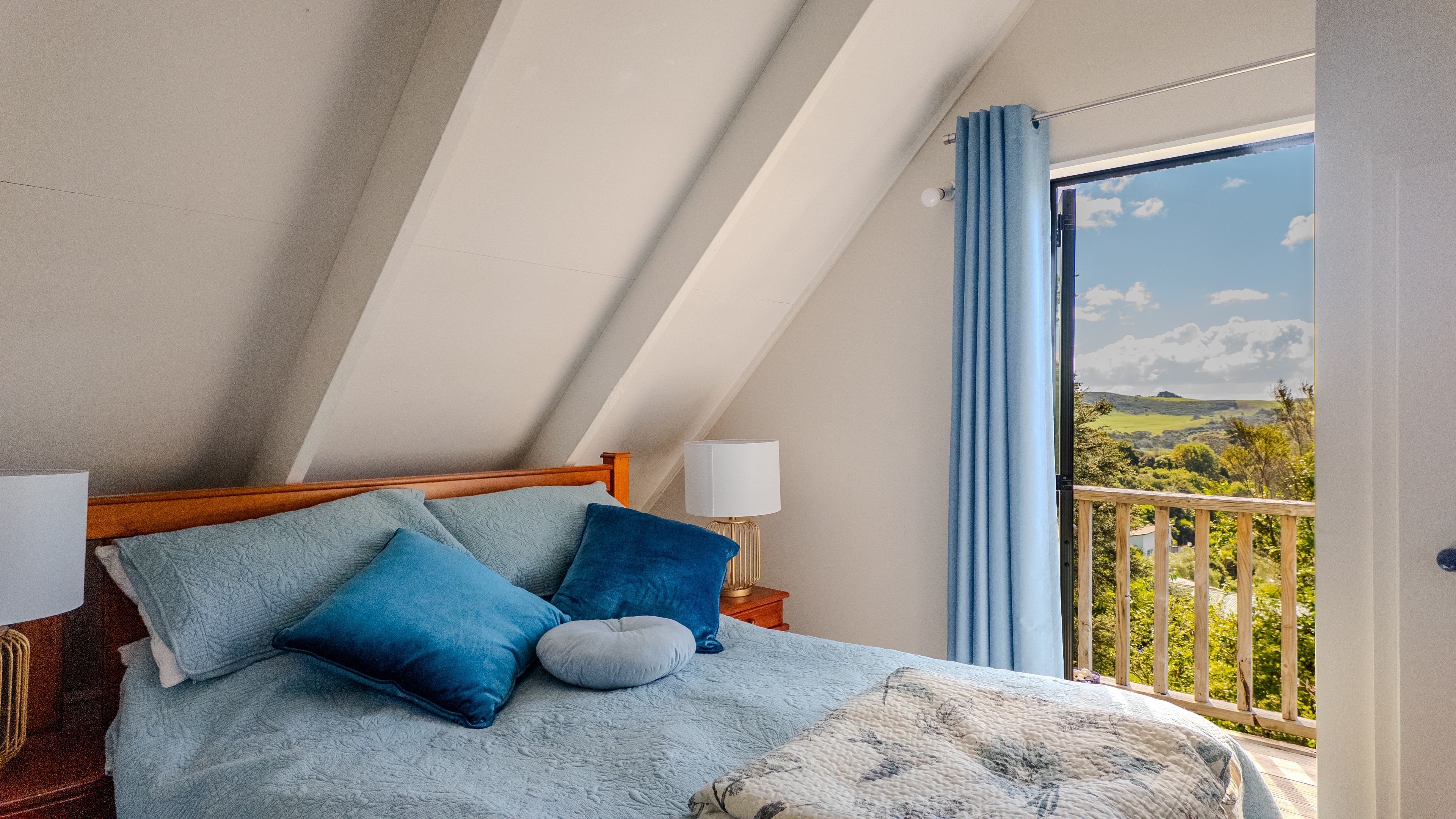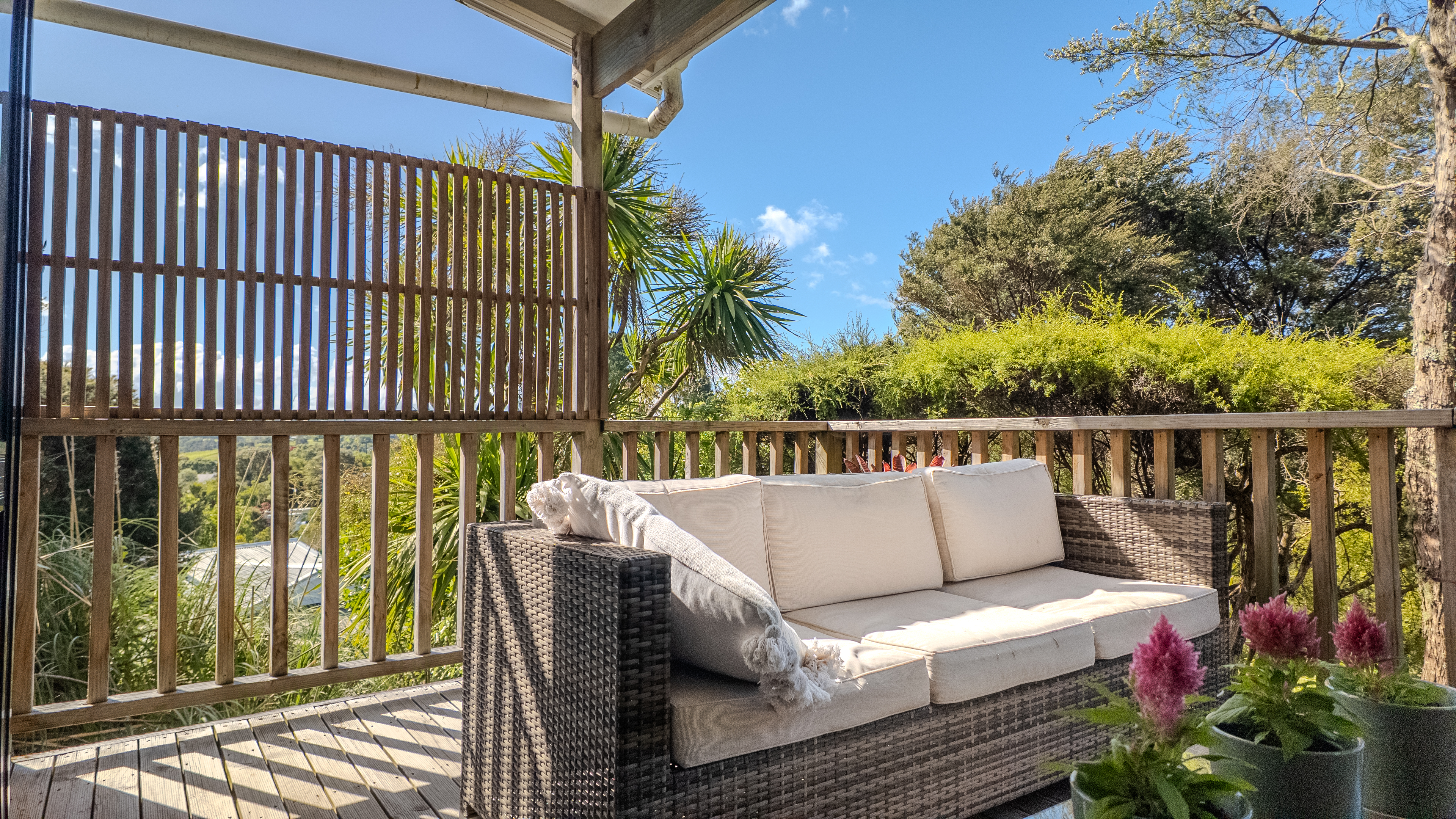 Set in a peaceful, elevated position with wide views stretching across the valleys and surrounding vineyards, this charming home offers true Waiheke serenity. The compact, fully modernised interior feels fresh and contemporary, with effortless indoor-outdoor flow to an expansive verandah – the perfect place to unwind as native Tui and Kaka land on the balcony to drink from the bird bath.