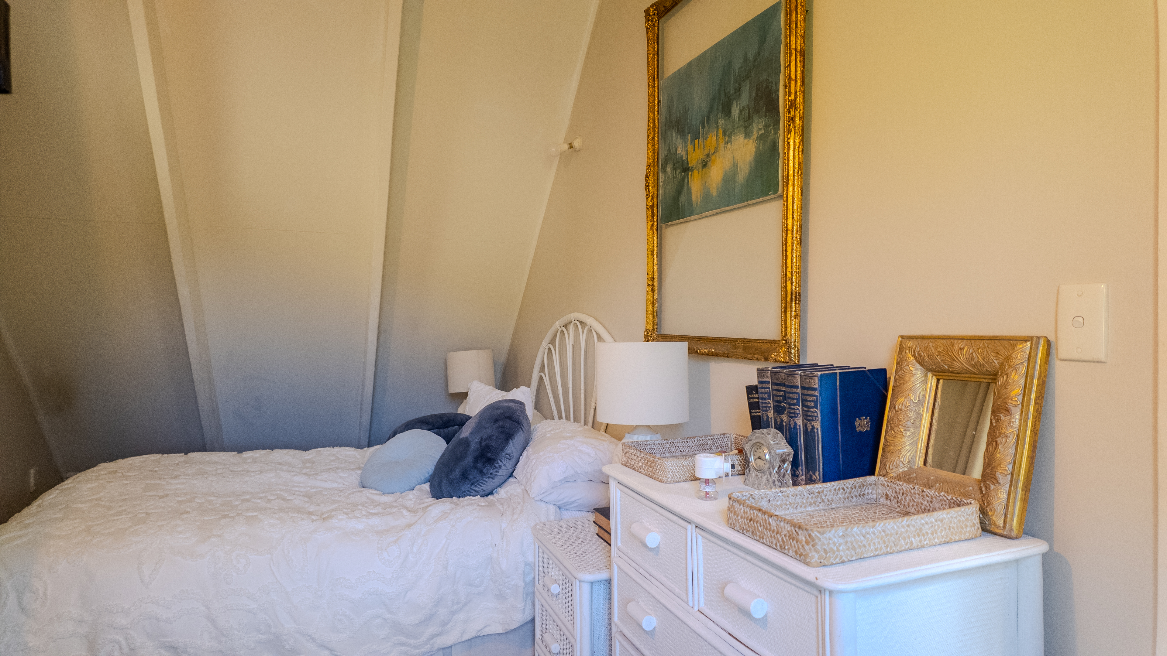 Upstairs, two private bedrooms provide a quiet retreat, capturing natural light and leafy outlooks. The gently sloping rear yard offers space for relaxation, gardening, or future ideas, all framed by the calming landscape.