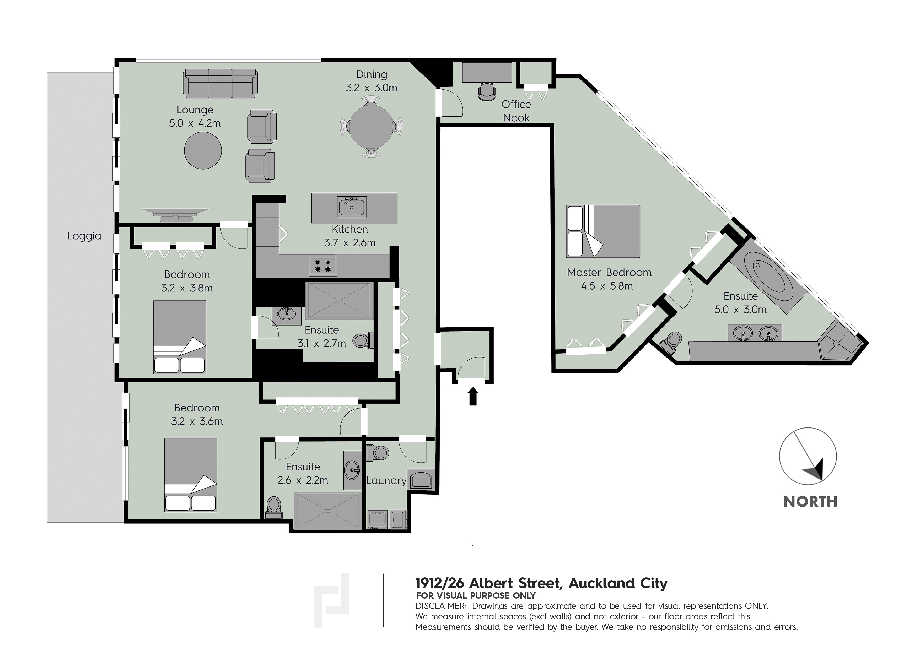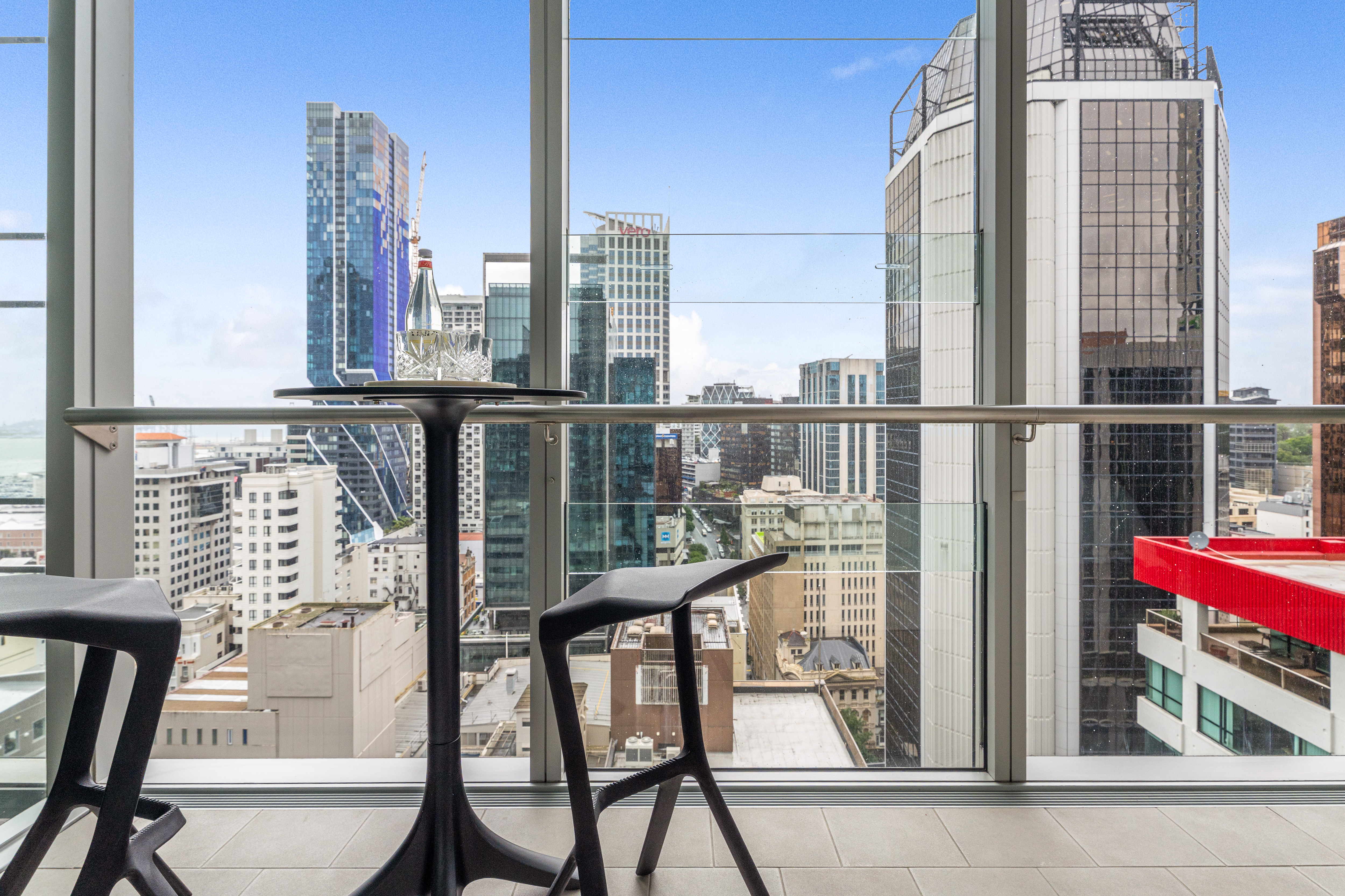 The expansive open plan living area spills onto your private loggia, offering a front-row seat to Auckland’s most coveted vistas – water views, park and city!