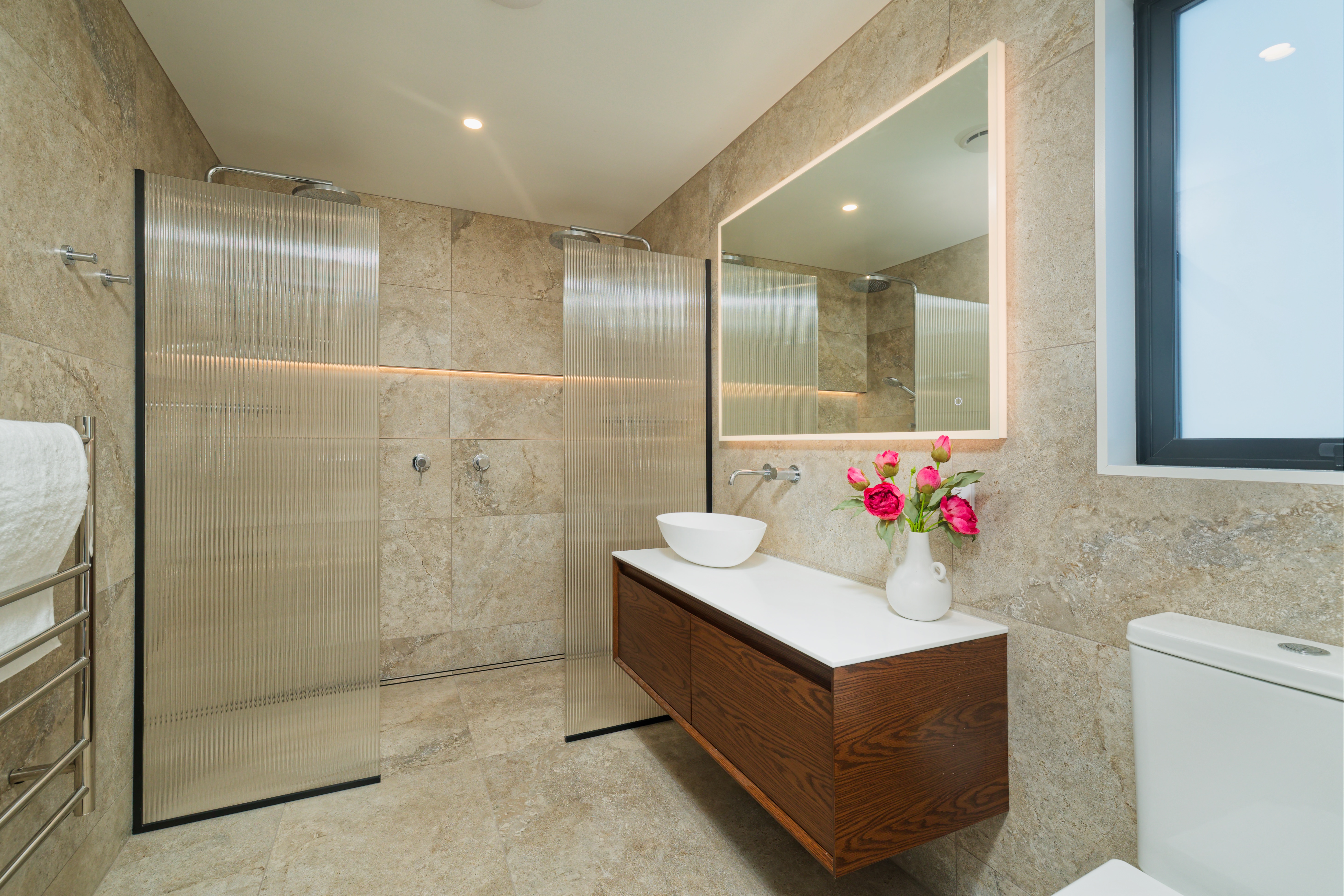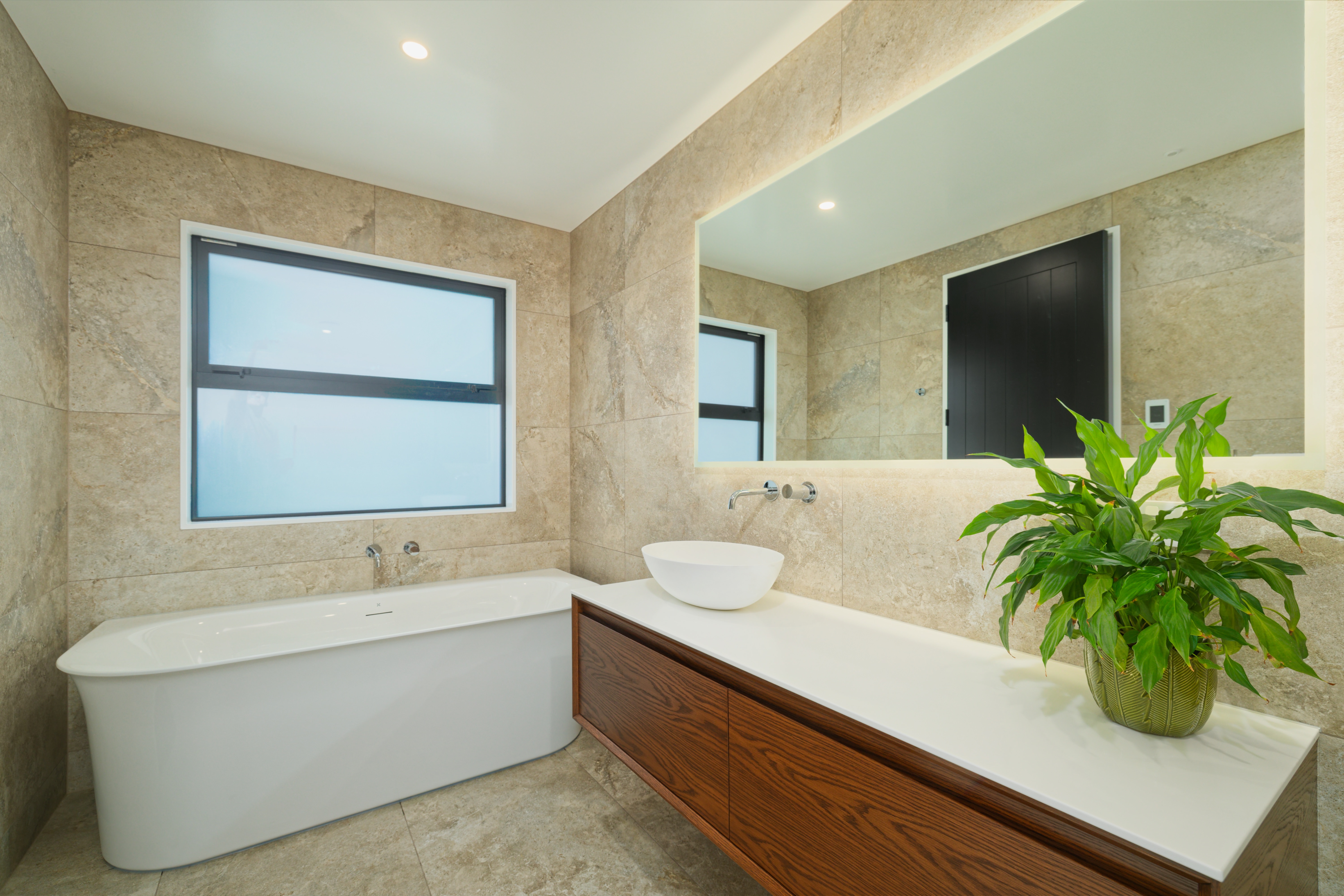 At the heart of the home, a bespoke kitchen anchors the open-plan living spaces, seamlessly extending to a wraparound Kwila deck – an entertainer’s dream and the perfect vantage point to take in the ever-changing landscape. Multiple living zones, including a dedicated media room, provide flexibility, while the master suite offers a peaceful retreat at the end of the day.