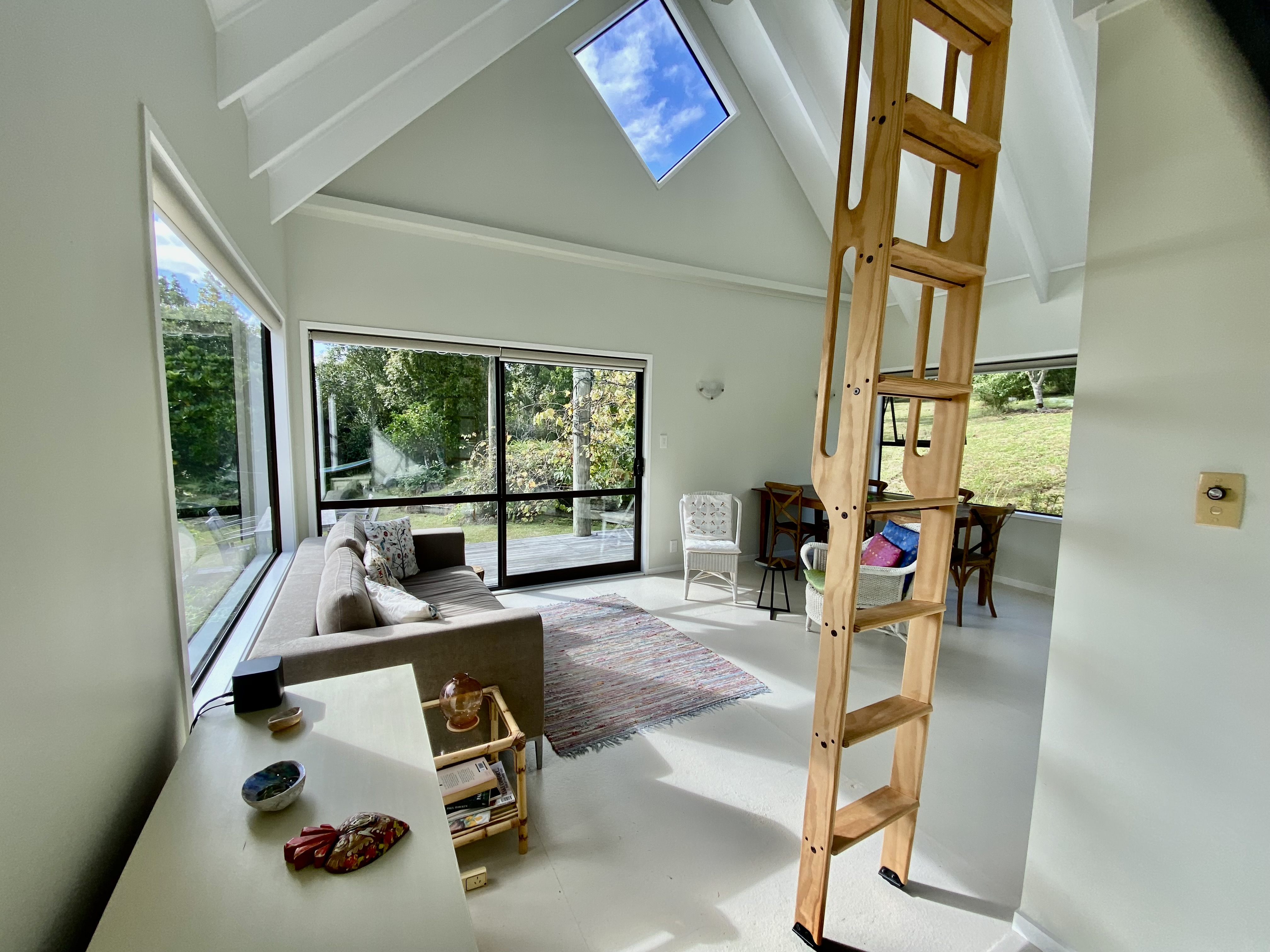 A separate studio/sleepout sits below the main house, complete with a sun-splashed deck overlooking those magnificent trees – perfect for guests, an artist’s retreat, or additional holiday overflow.