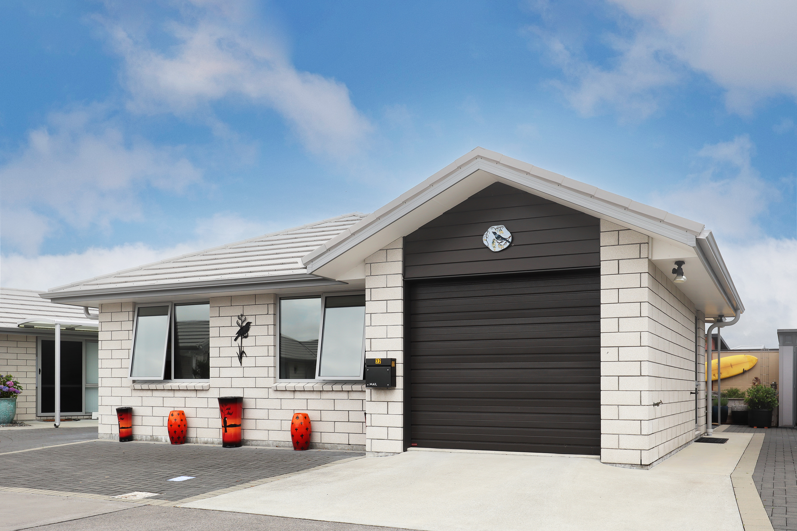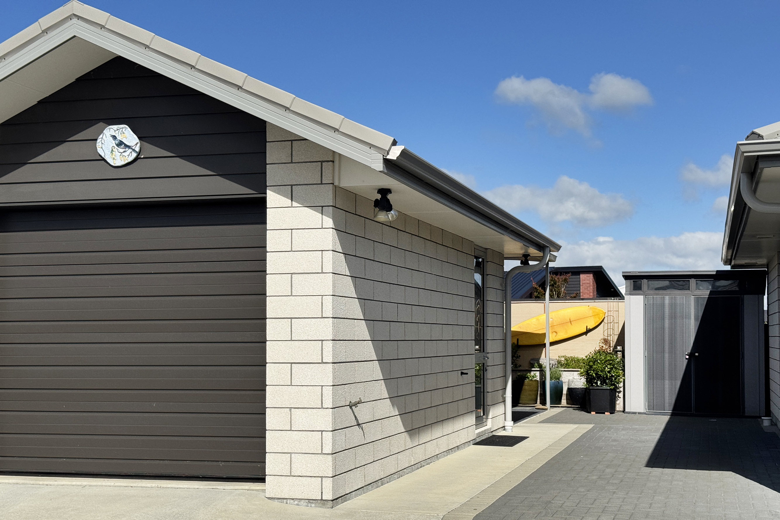 The insulated garage incorporates the laundry and an additional storage cupboard, ensuring everything has its place.
