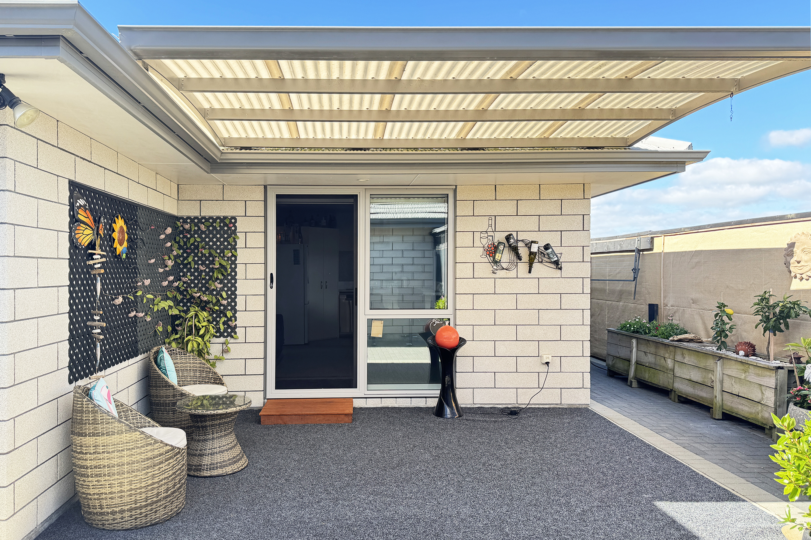 Outdoors, relax or entertain under the stylish pergola with upgraded flooring, complemented by a windbreak along the back fence. The property also includes two exterior water taps, an outdoor power point, and a generous garden shed with extra cupboards for storage.