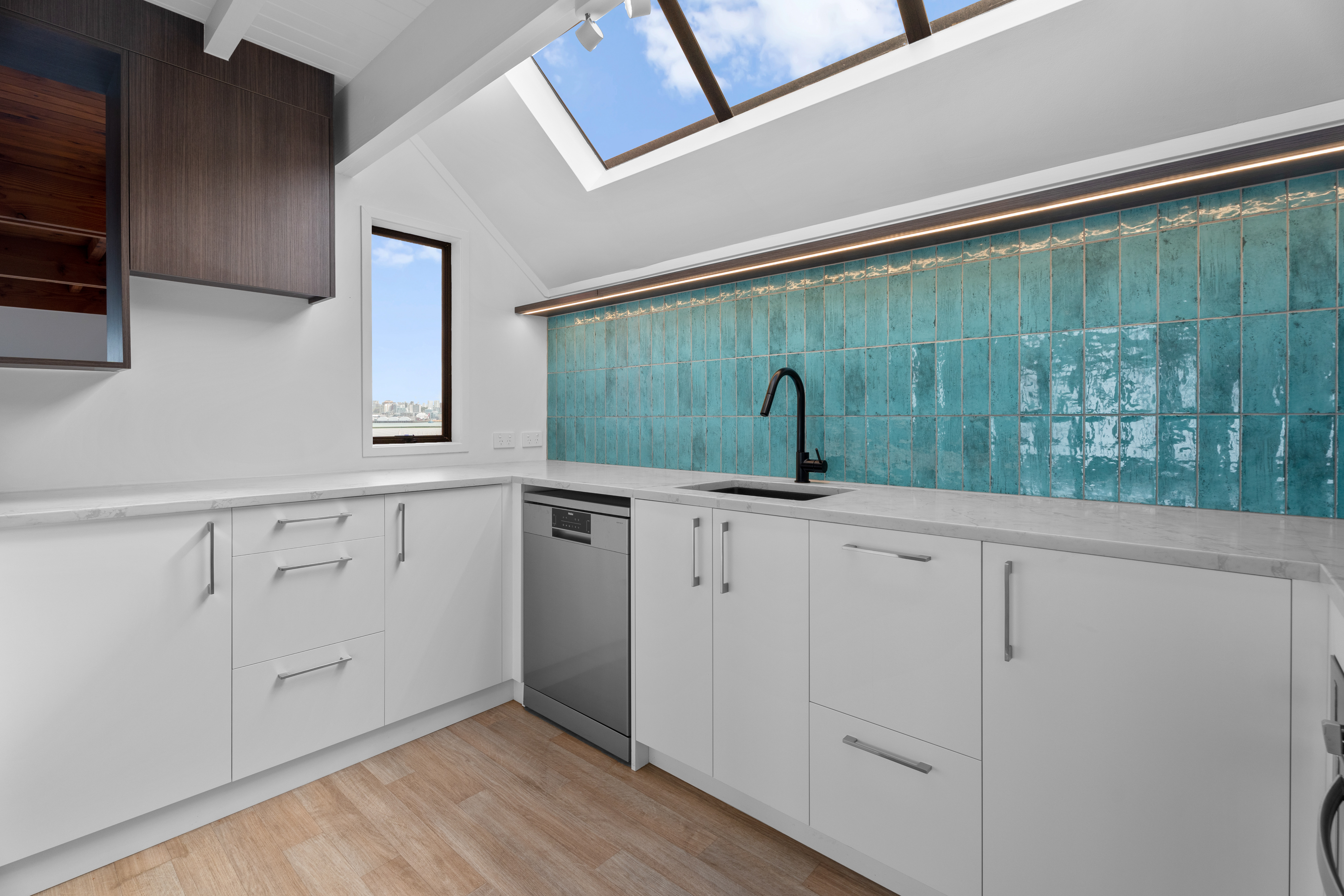 Morning light pours in from the east, courtesy of the home’s desirable aspect and position with the road to the left of it, creating a serene start to every day. In the evenings, golden hues from the west drape the home in colour. A real benefit in Devonport is to have so much sun around you! A lovely bright feel inside with colourful gardens full of flowers outside are also a total delight.