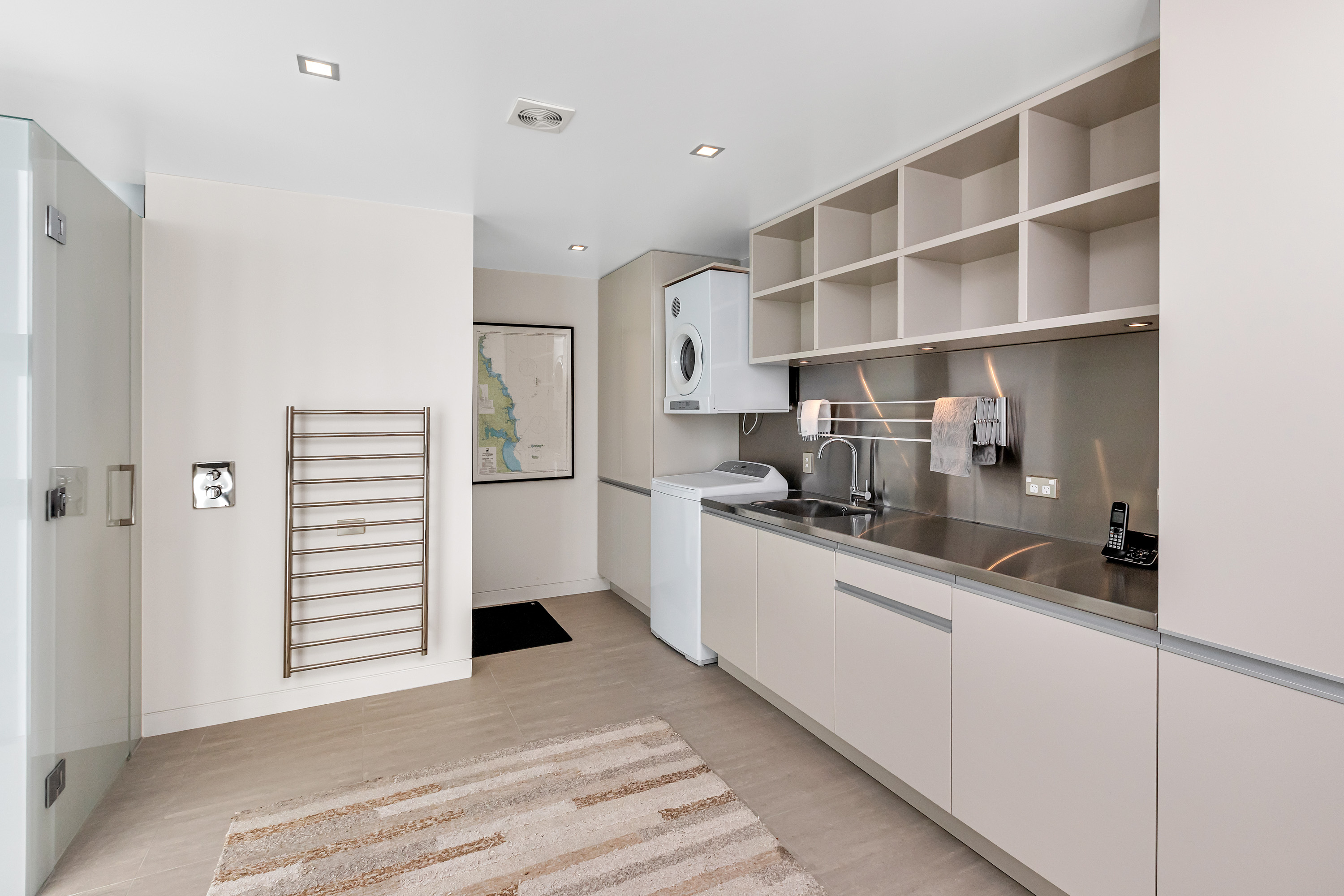 Throughout the home, American oak hardwood flooring adds warmth and sophistication to the open, airy spaces. A private west-facing courtyard offers a peaceful retreat, while a dedicated storage area provides ample space for water toys, ready for fun-filled days at the beach. With automated blinds and curtains, server room and extensive cabling the home features the latest in convenience and technology.