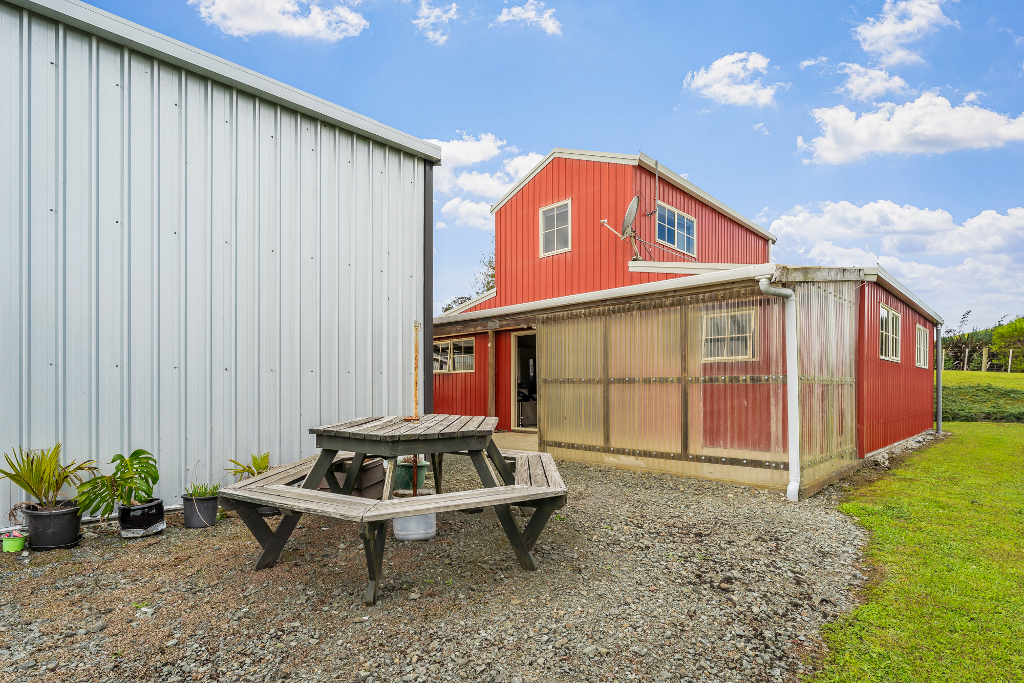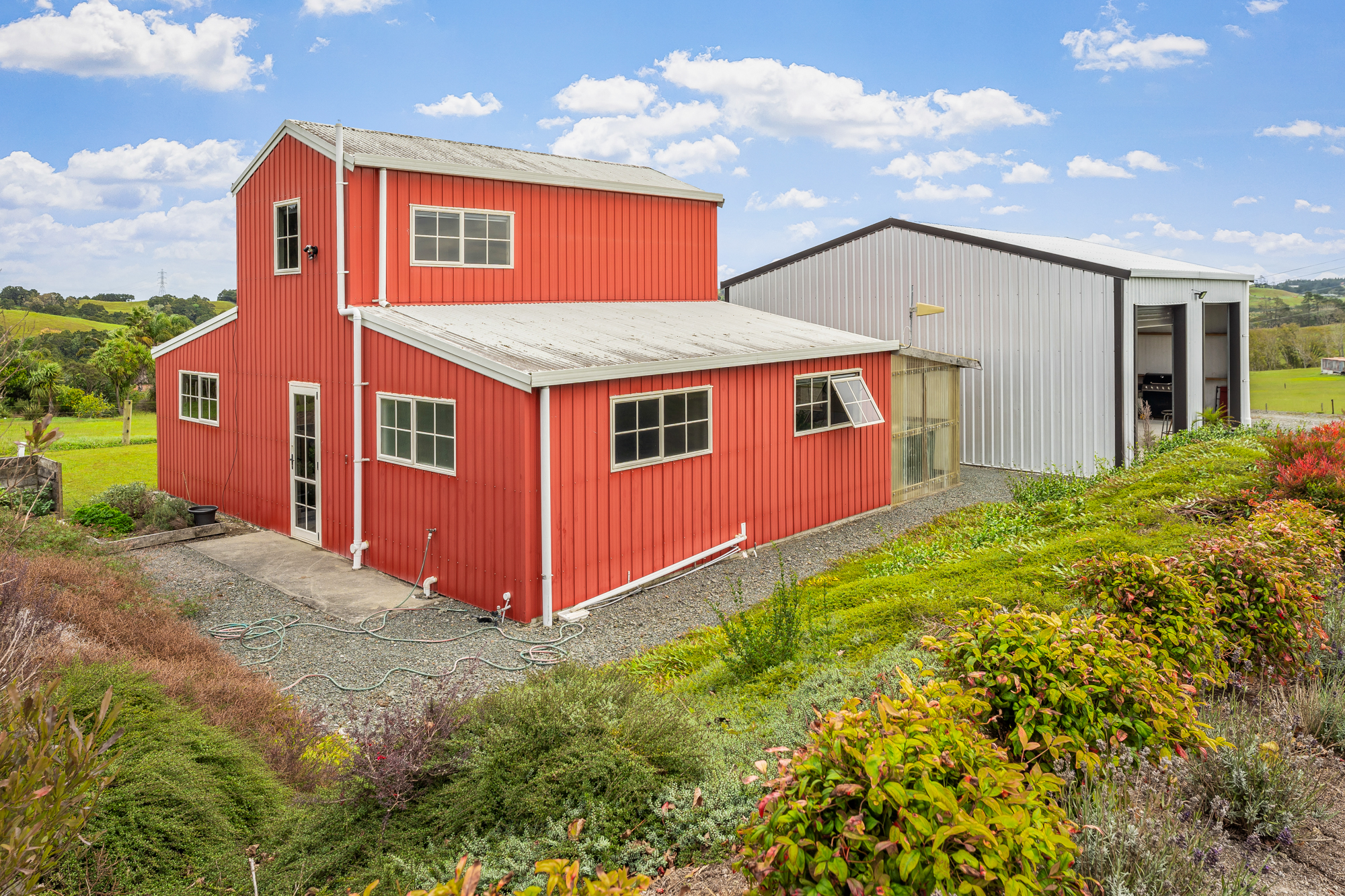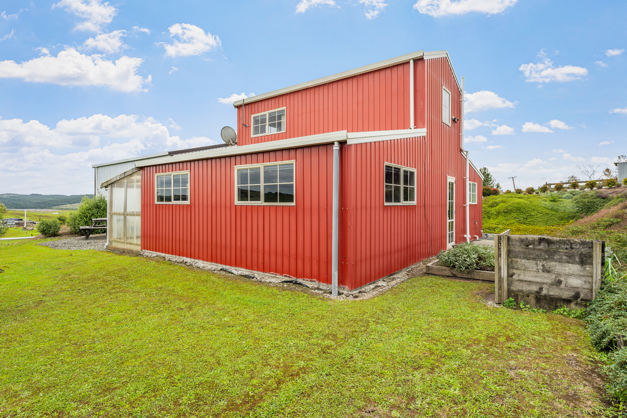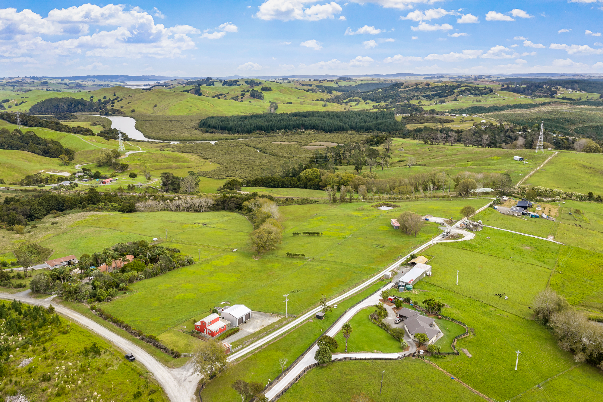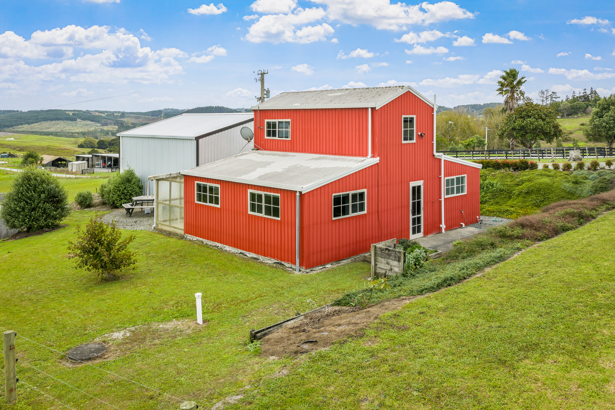 American Barn style country living on a very pretty block with gently rolling, well drained contour. Perfect hay country with lush pasture fenced into 8 paddocks. Large hard stand area with 3 phase power and an old dis-used loading race. Support sheds include a 5 bay calf rearing shed with power, secondary implement shed and a high stud 9mx9m shed with concrete floor, 15 amps of power and a car hoist.