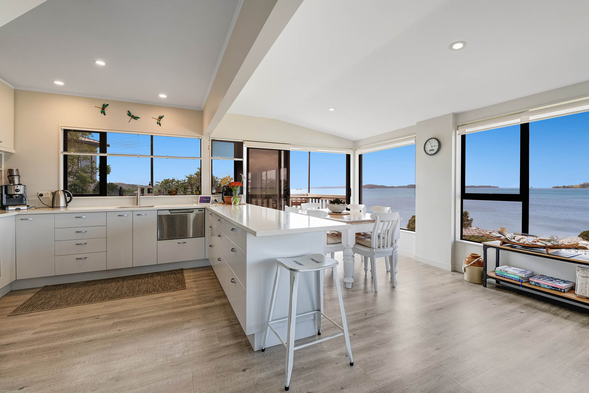 Perched above the shimmering waters of Kawau Bay, this immaculately maintained four-bedroom, two-bathroom home offers a rare opportunity to secure one of Snells Beach’s most enviable views. Thoughtfully designed for relaxed coastal living, the home features spacious open-plan living that flows effortlessly onto covered, sea-facing decks-perfect for soaking in the uninterrupted panoramic outlook.