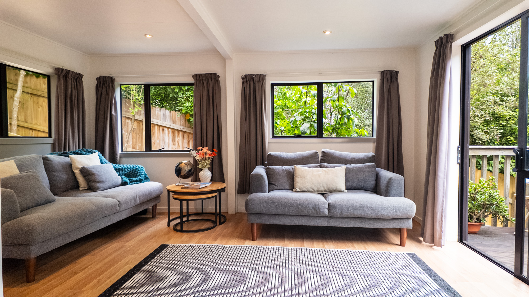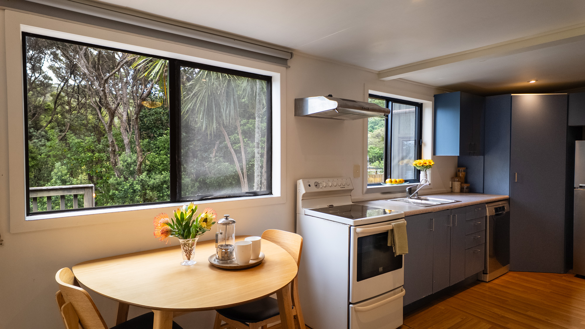 Step through the welcoming red front door and into a light-filled lounge that instantly feels like home. This classic, recently refurbished bach offers single-level and open-plan design that connects to a neat, modern kitchen and a cosy media nook – the perfect spot to relax all year round with a good book and one of Waiheke’s finest wines. From the lounge, there’s also a seamless flow out to an elevated deck and private back yard.