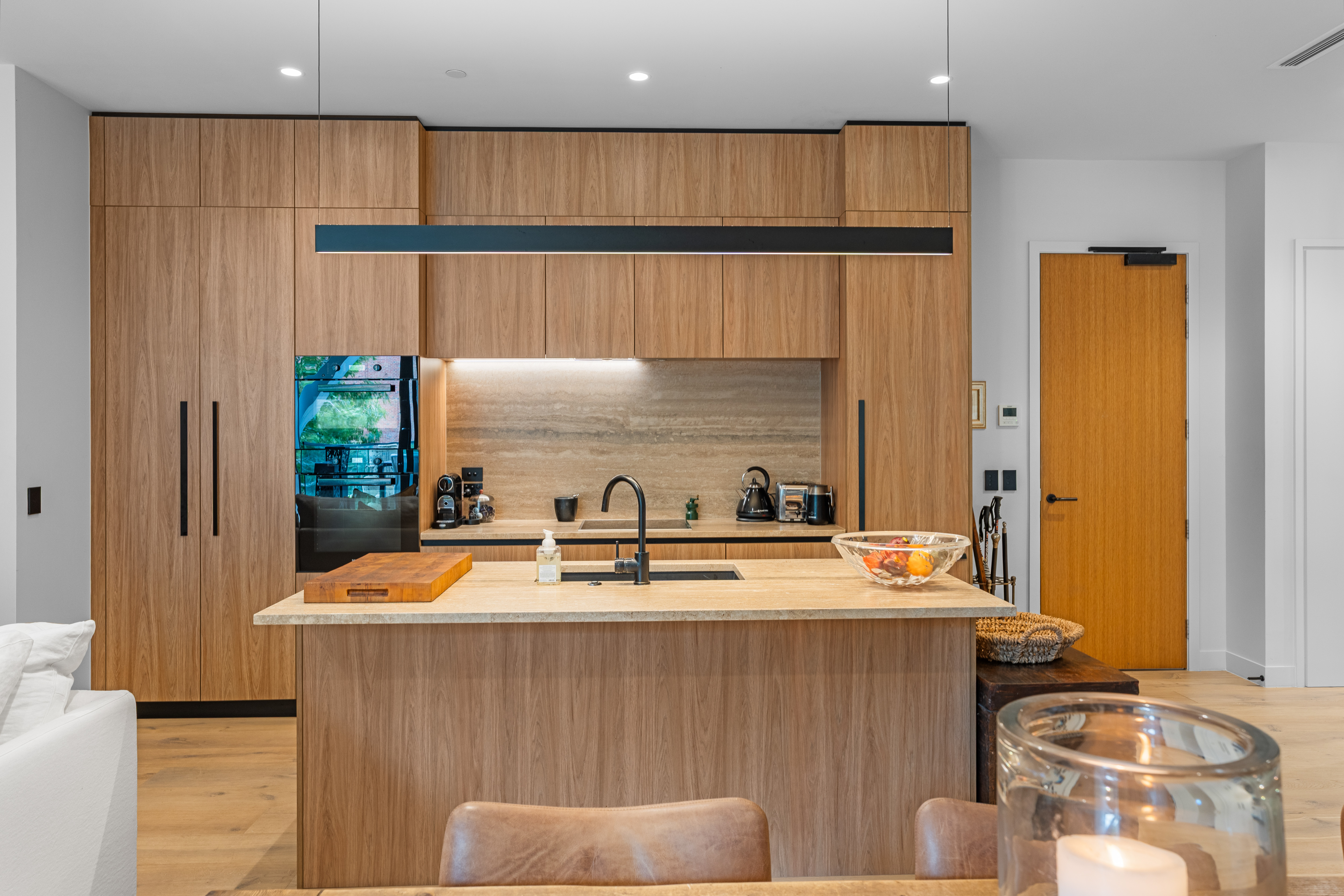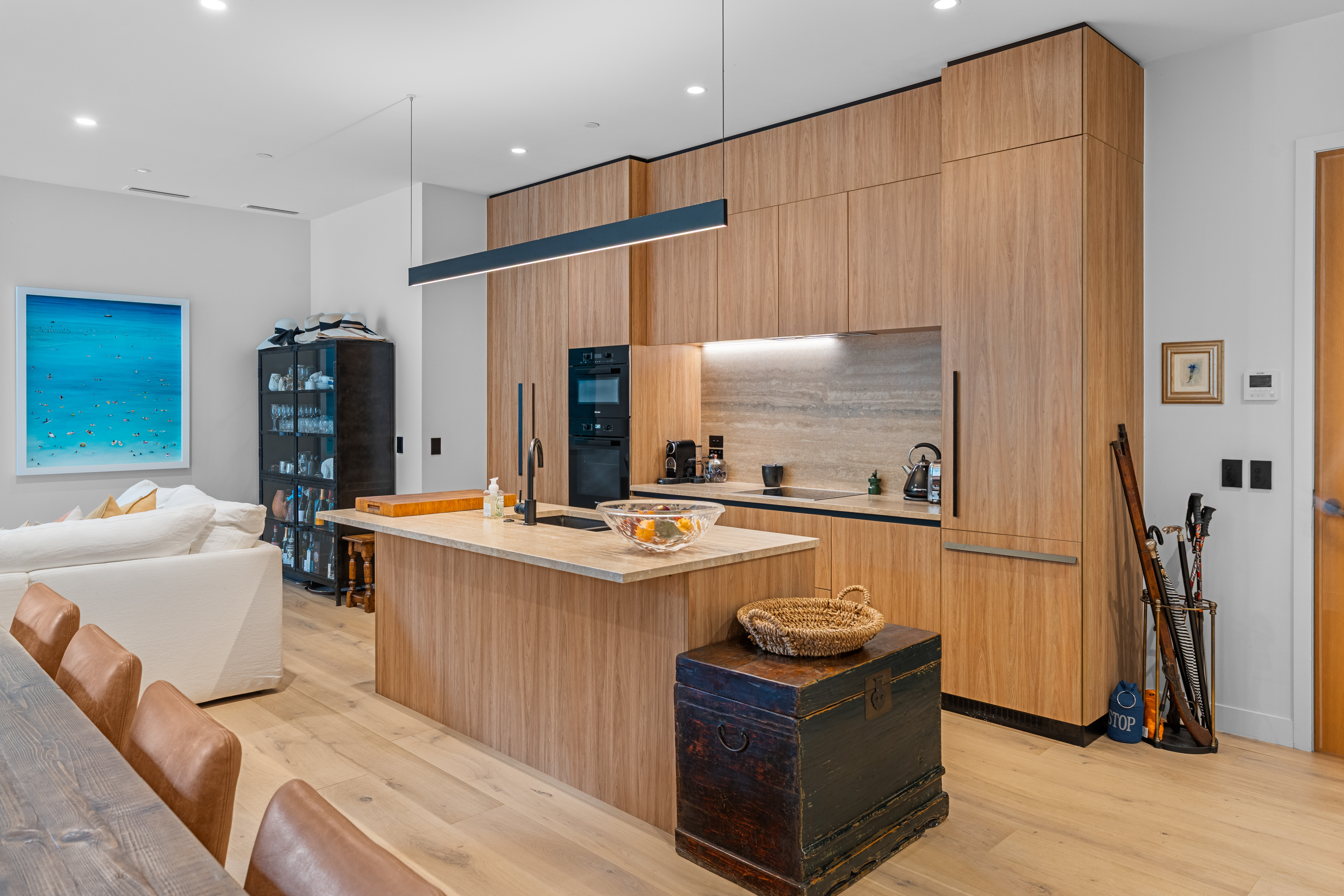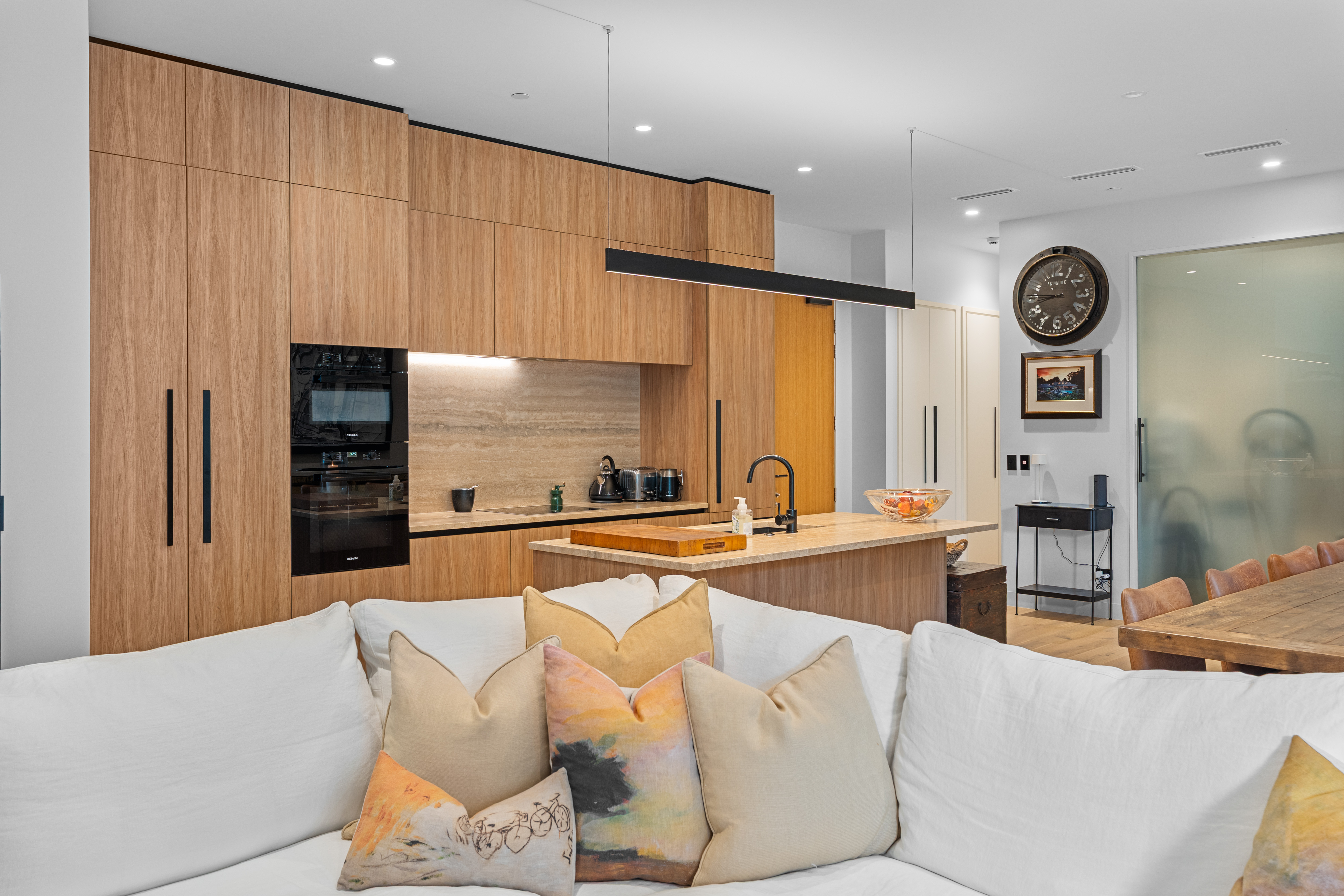 The home unfolds across 139sqm of beautifully composed living, where soaring 3m ceilings, expansive walls and blonde timber flooring provide the backdrop to a life well lived. Entertaining takes centre stage in the light-filled open plan living sanctuary with its premium chef’s kitchen and effortless connection to the intimate outdoor terrace.