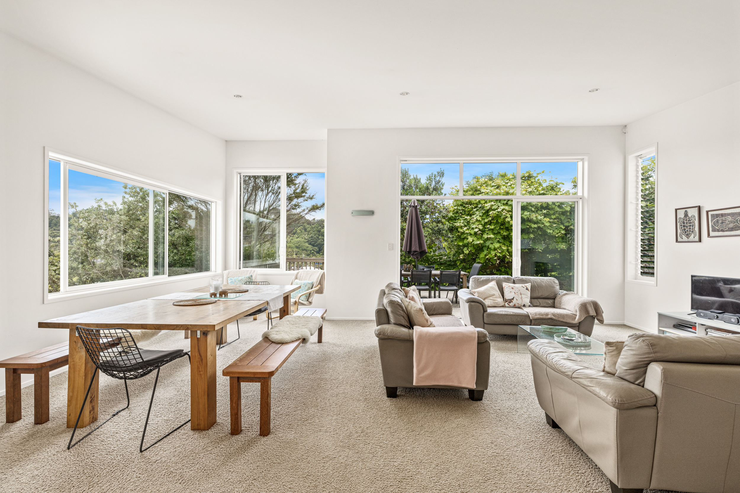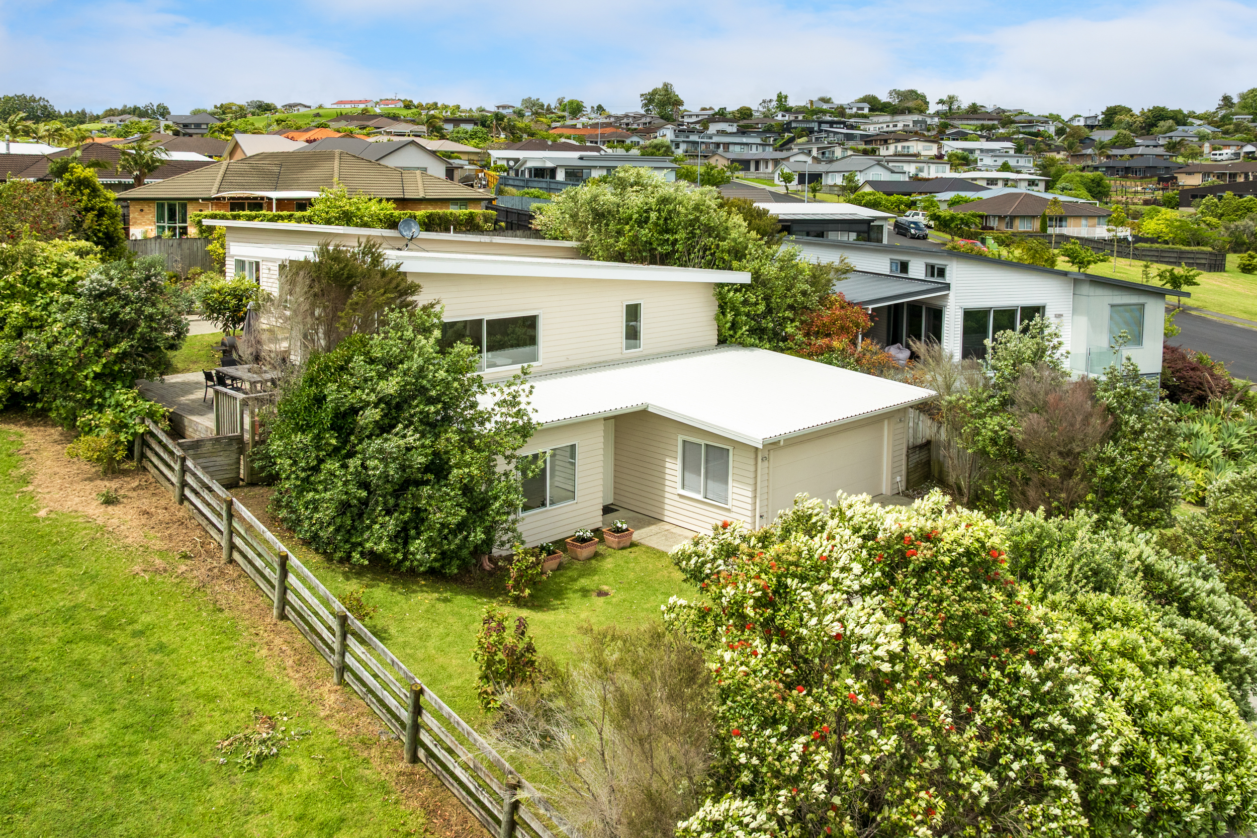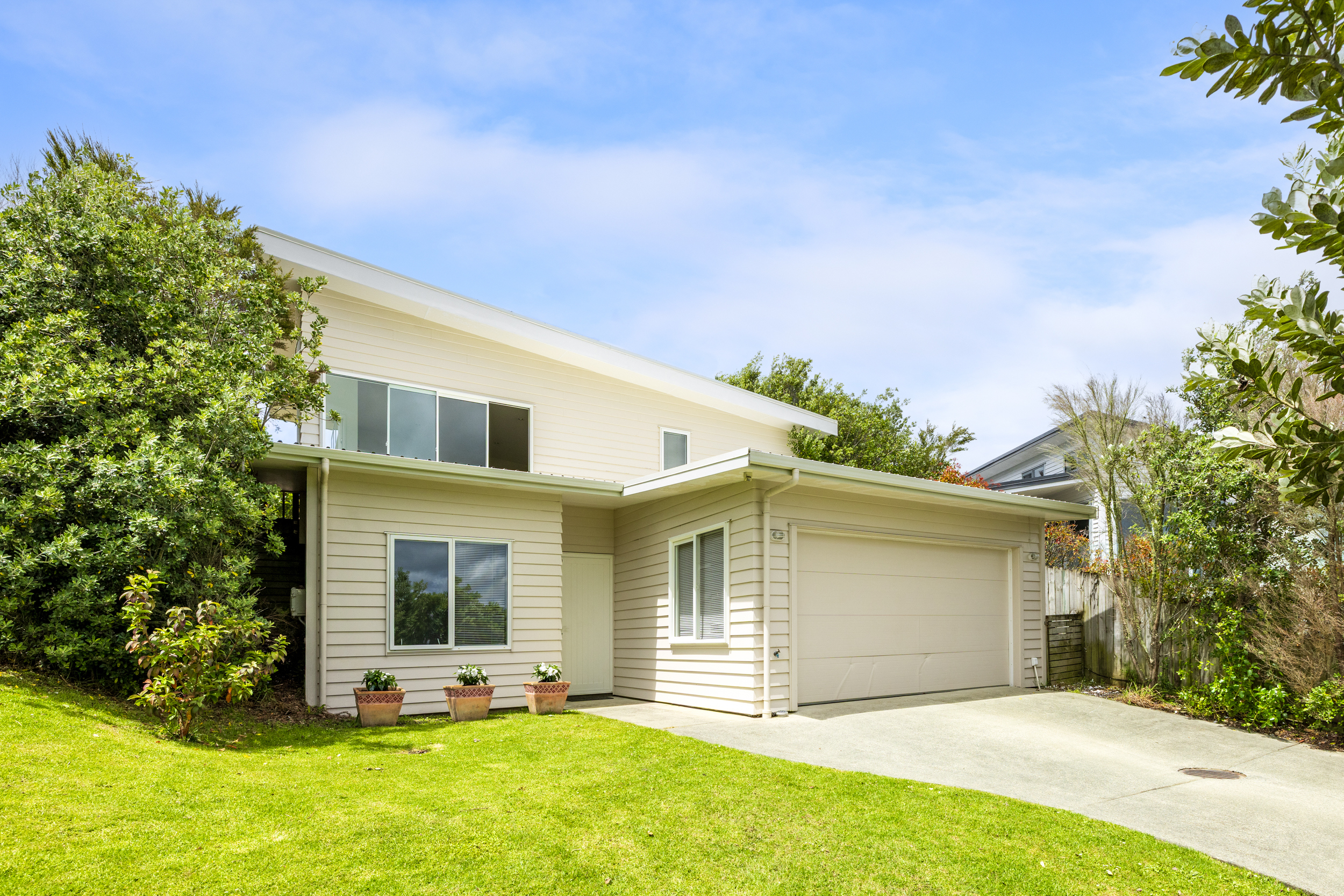 This well-presented architecturally designed north-east-facing weatherboard home overlooks Warkworth, and the Mahurangi River. The property, built in 2012, offers approximately 202 sqm of floor area on a 672 sqm section and features double glazing, an iron roof, and a double garage with lined walls and door.