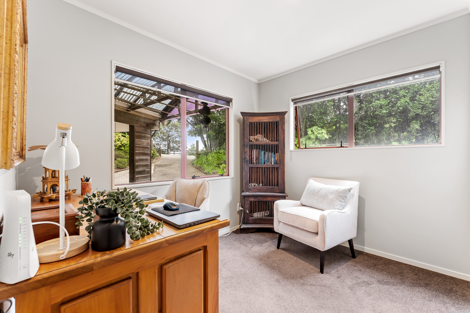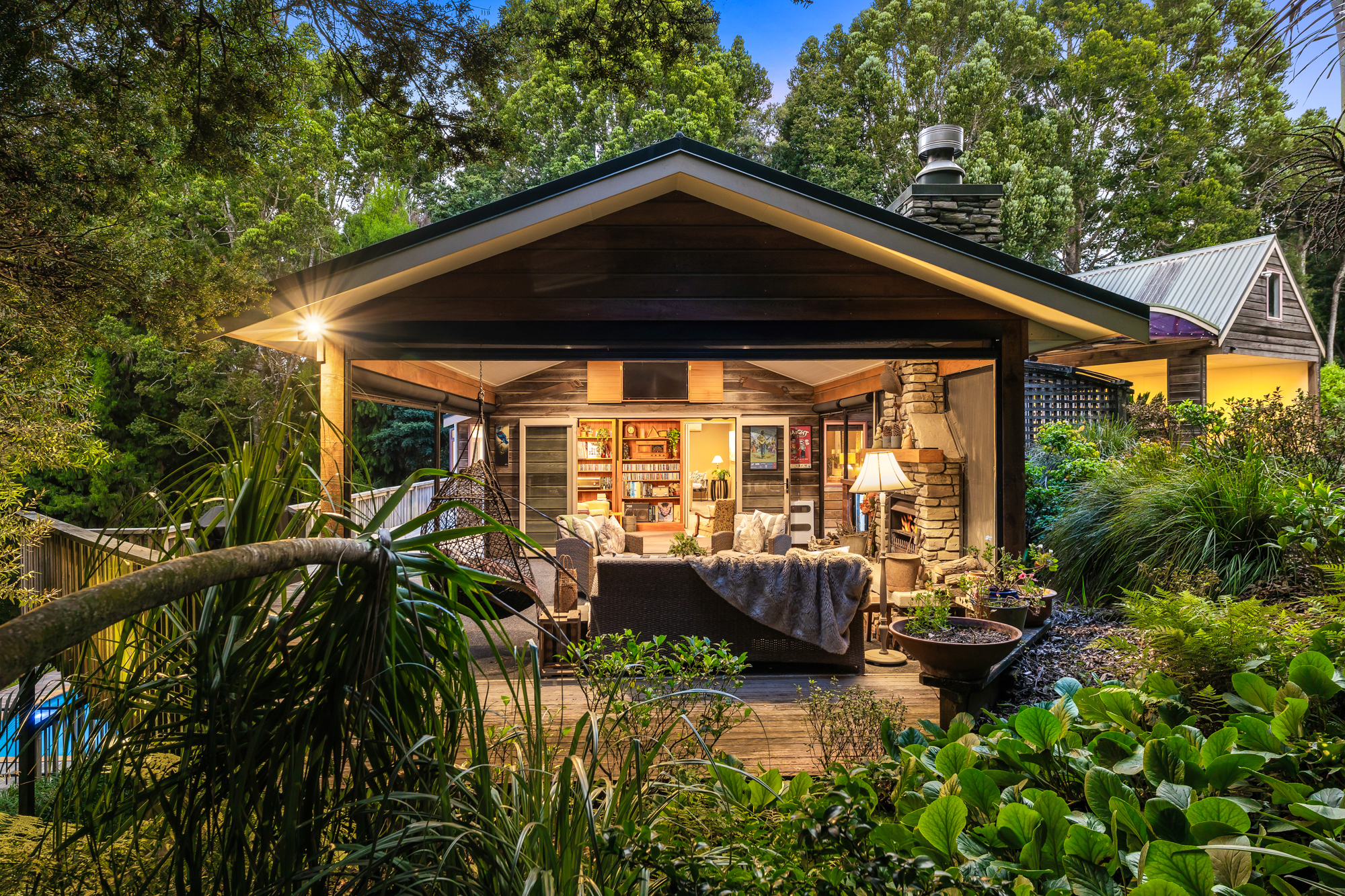 Outside, pristine native bush teeming with surprises frames the property, and tasteful outdoor lighting uplifts the treescape at night, casting a magical glow around the pool. Practical needs are well met with abundant off street parking on paved hardstand, room for several vehicles, (a boat, motorhome or trailer) or a future shed, and there is ample storage in the loft above the carport. This unique property is an entertainer’s sanctuary set within pristine bush, full of subtle surprises and only two minutes from town. Loved and cared for by the same owner for 30 years the time has come for a change of ownership creating a fabulous opportunity for a lucky new owner.