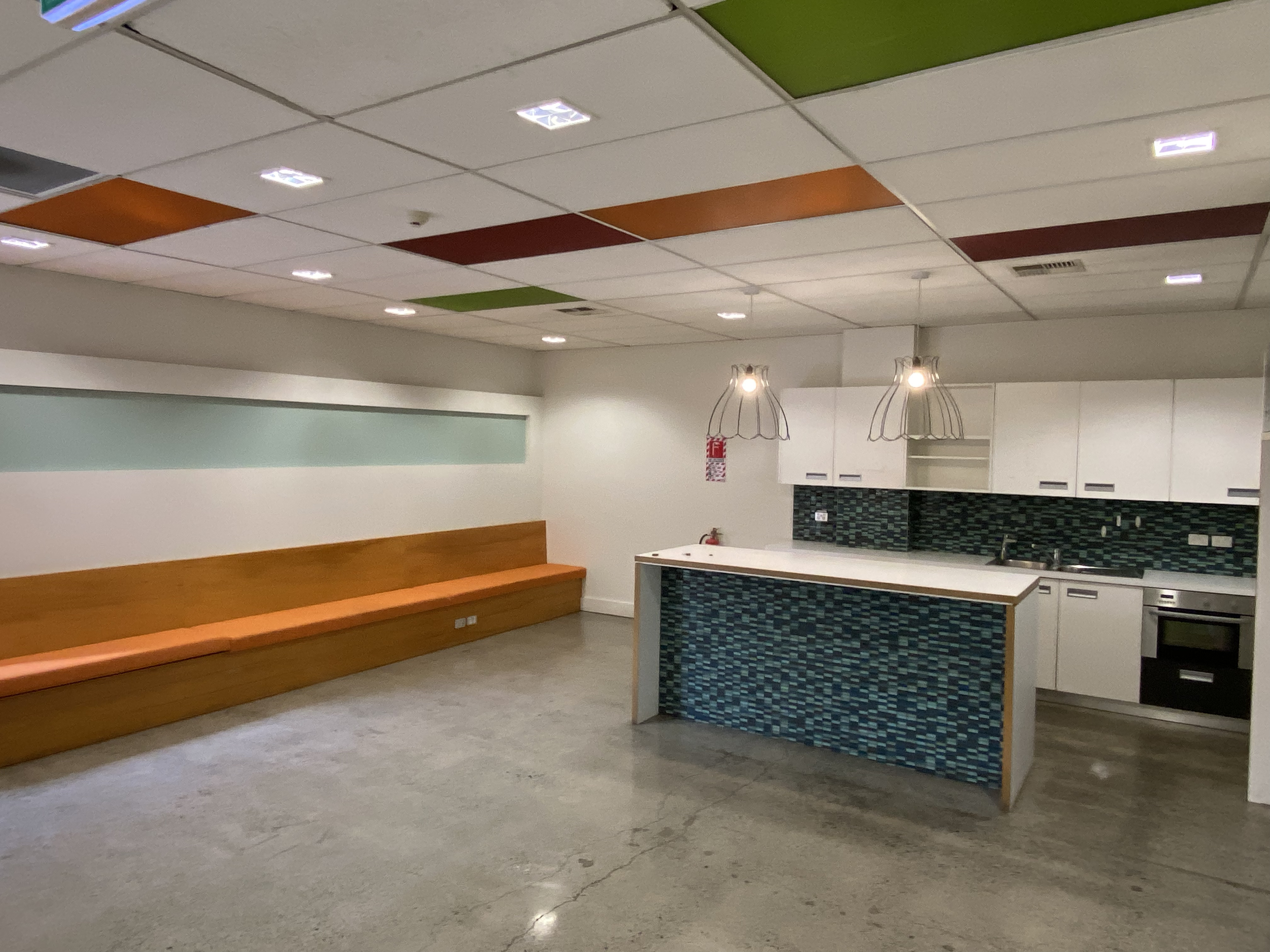 A spacious kitchen and breakout area