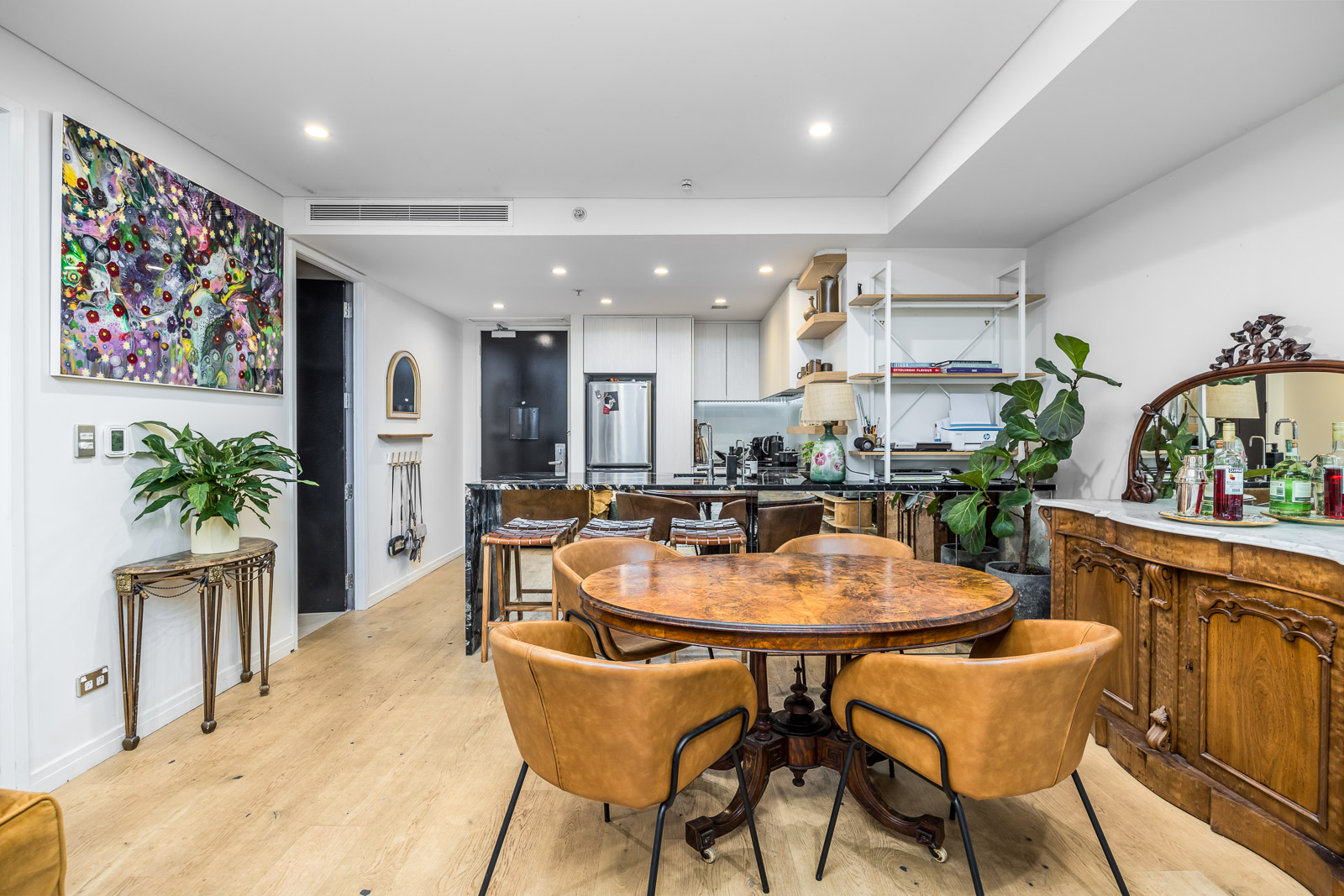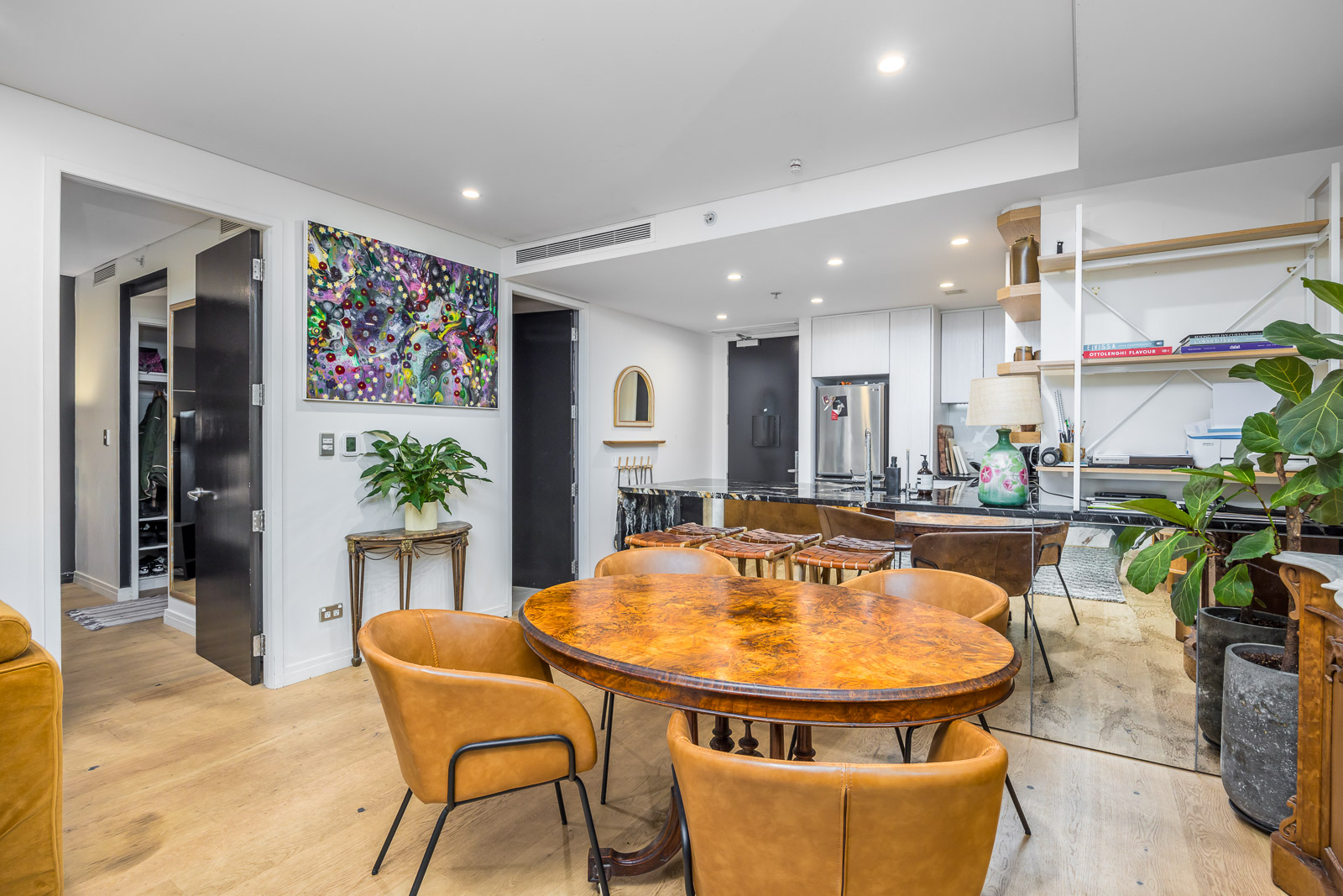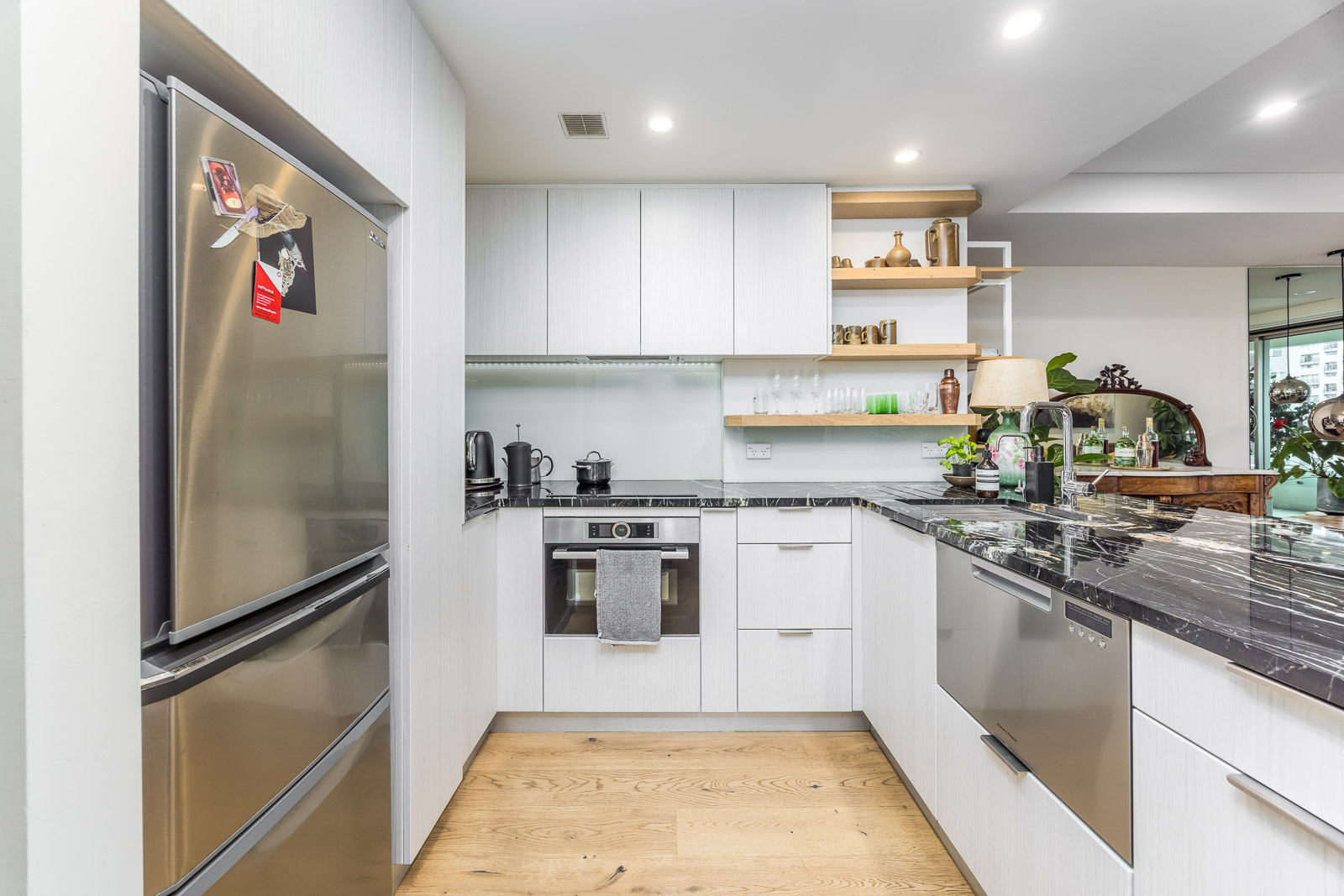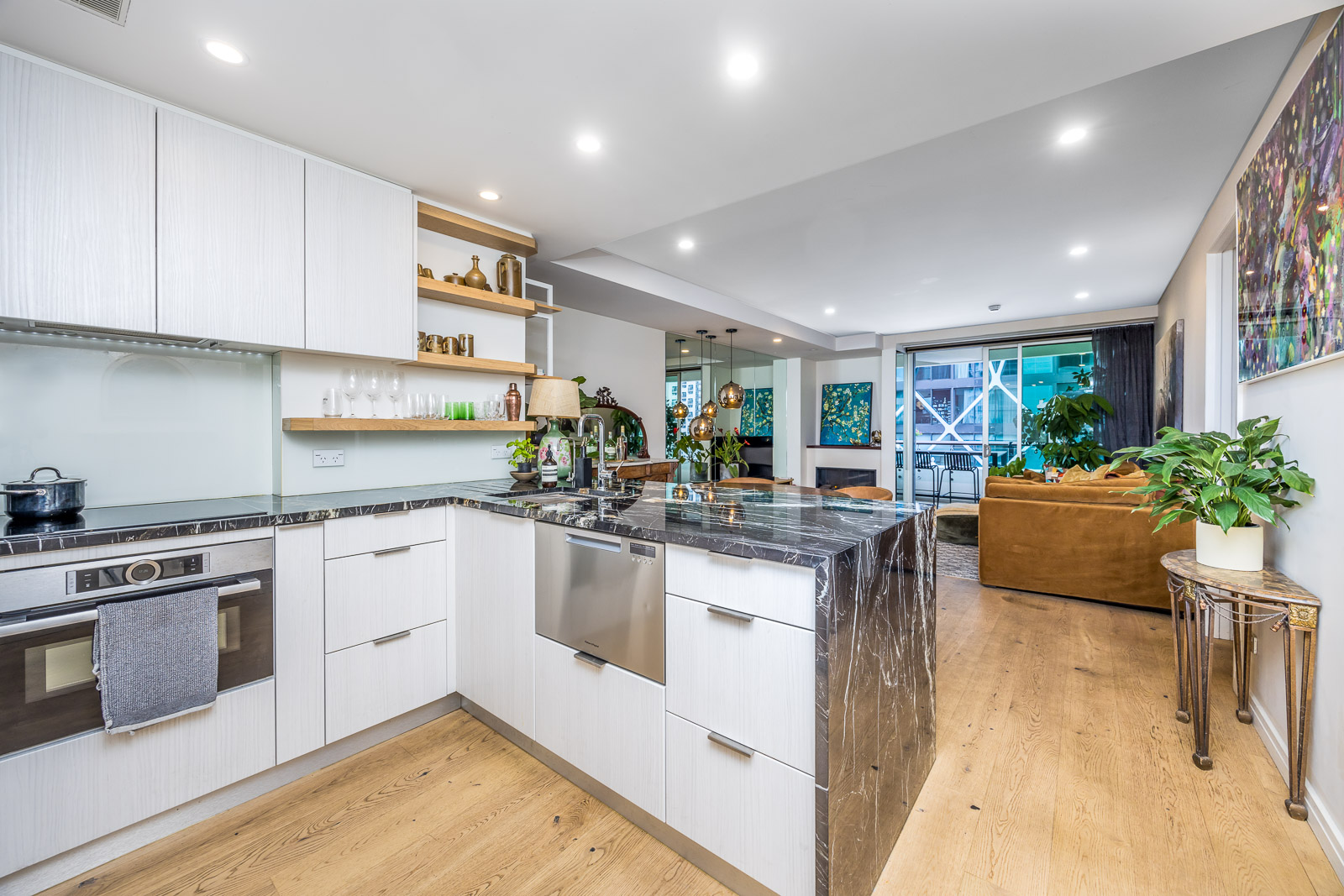 The gorgeous open plan living and dining is anchored by a pristine near new contemporary kitchen with plenty of storage for easy meal preparation – that is when you’re not dining at one of the numerous world class restaurants on your doorstep such as Onslow across the street or at the Pullman Tapestry Grill. You are very separate from the Hotel with an added bonus of covered & secure walkthrough to enjoy 5 star comforts.