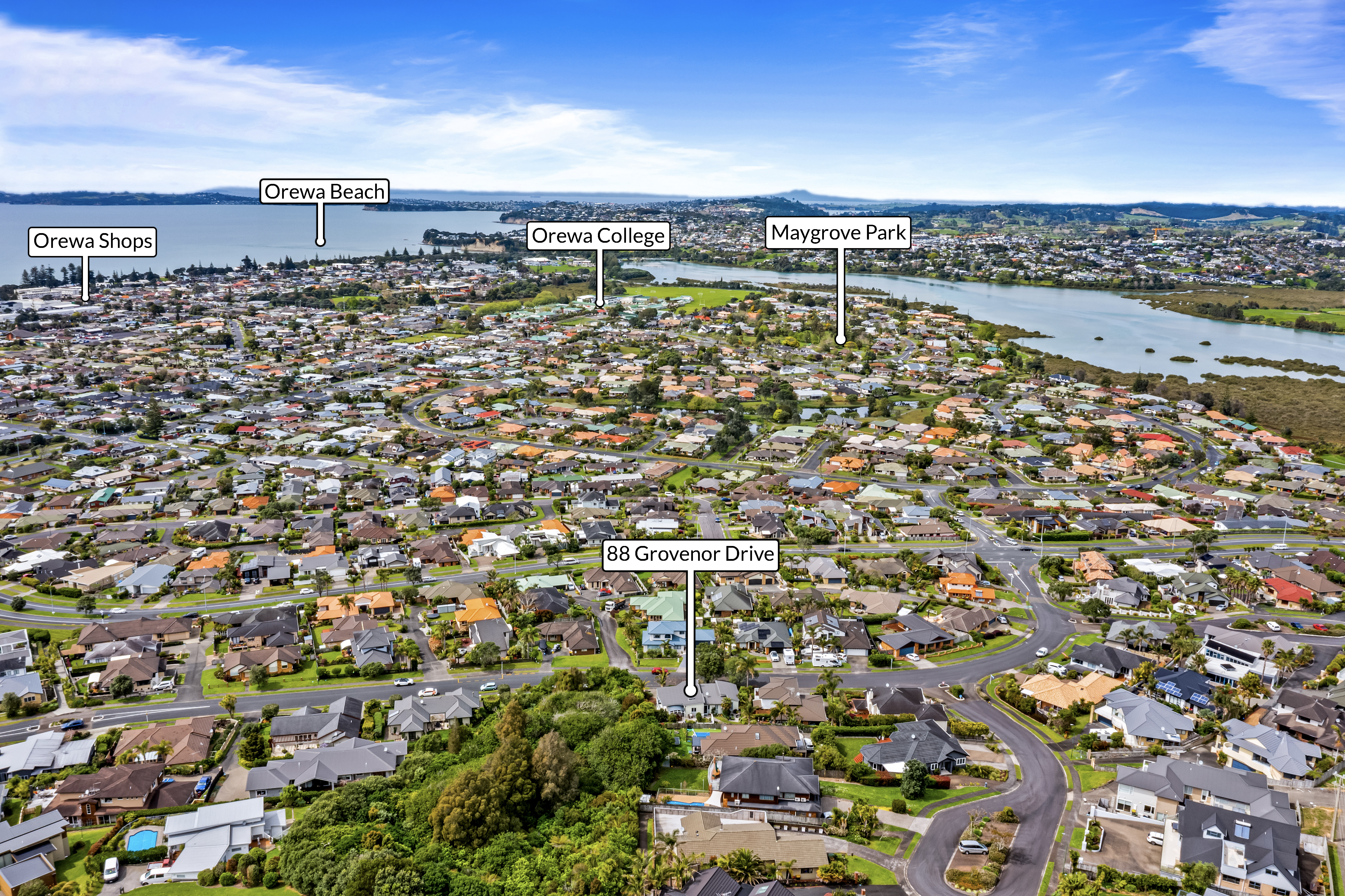 Concrete Hebel Construction & Sea Views. First time on the market ever this is a rare opportunity to secure a truly exceptional home in one of Orewa’s most prestigious and tightly held streets. Known for its upmarket appeal, peaceful surroundings, and quality neighbours, this address offers the ultimate blend of lifestyle and location – all just minutes from the beach, town centre, and motorway access. Amazing sea views can be enjoyed from this uniquely designed home by Visual Statements. Built with solid Hebel concrete construction, this striking home combines timeless design with long-lasting durability. A unique home that offers discerning buyers a chance to own a thoughtfully crafted, personality-filled property that stands out from the rest. Inside, the home’s elevated position delivers stunning sea views and an abundance of natural light. Soaring ceilings and a bold, architectural roofline create a sense of space and drama, while the northern aspect looks out over a lush, green reserve – offering both privacy and a beautiful natural backdrop. The flat, low-maintenance garden flows seamlessly off the open-plan kitchen and dining area, making indoor-outdoor entertaining effortless. There’s also space and wiring in place for a spa pool, allowing you to enhance the outdoor experience even further. Flexibility is a key feature here. The downstairs master suite includes a kitchenette and its own external access, opening up a range of possibilities for extended family, guests or a separate work-from-home space. The other ground-floor bedroom is ideal as an office and a quiet, productive zone for those needing to work remotely or run a business from home. Practicality hasn’t been overlooked – there’s a dedicated laundry with direct garden access and a spacious internal garage that includes a workshop area. Under the house, a rainwater tank and pump system provide a sustainable solution for watering the garden or washing the car. This is not just a home – it’s a statement. A solid, well-designed property that offers flexibility, flair, and function in equal measure. Whether you’re looking to upsize, downsize, or secure a lock-and-leave coastal residence, this home delivers on all fronts. With the auction fast approaching, now is the time to act. Properties of this calibre in such an outstanding location rarely come to market. Contact us today to arrange your private viewing or attend an upcoming open home – this is seaside living at its finest, and it won’t last long.