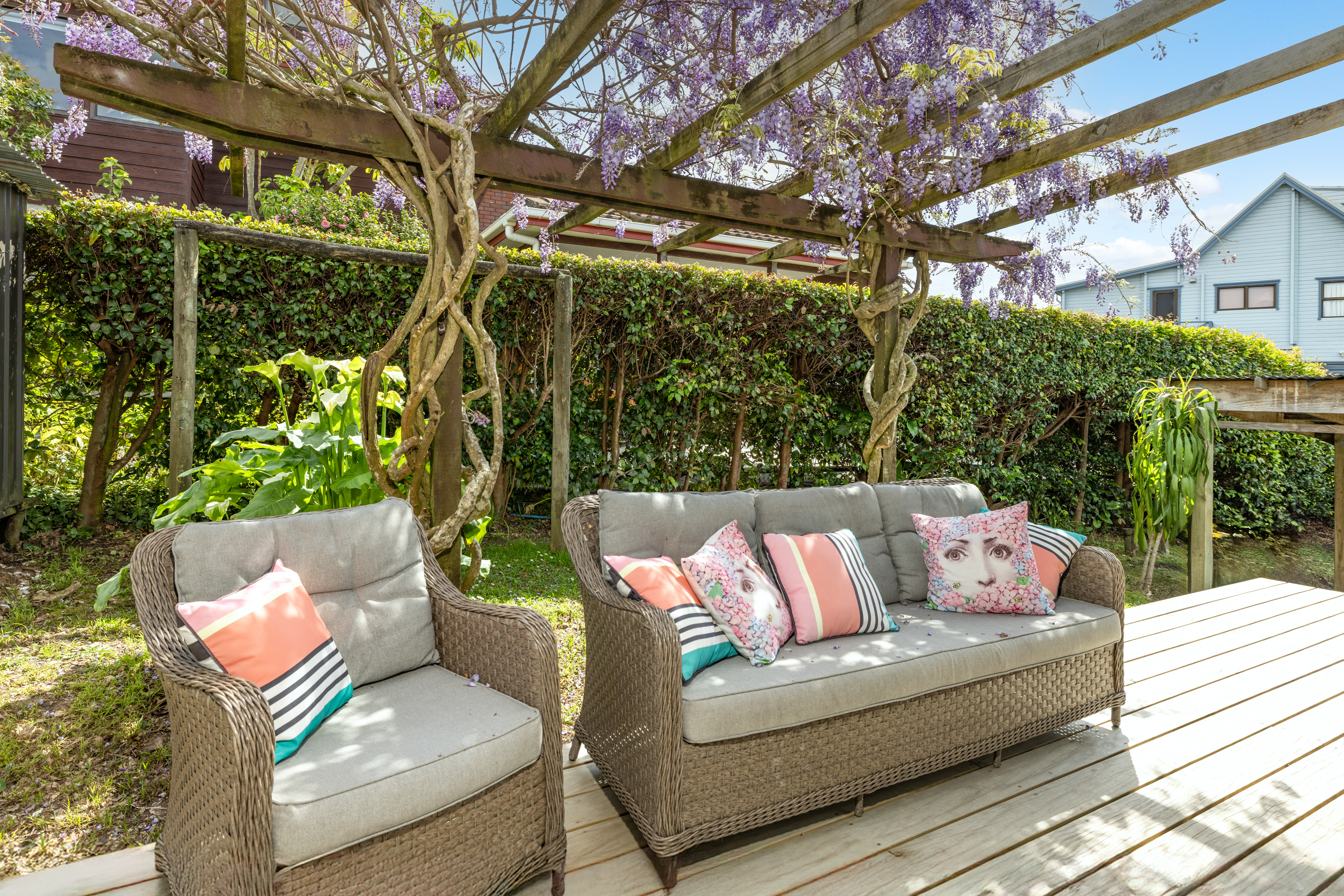 Enjoy morning coffee on the sunny front deck looking over the sparkling ocean, or evening wine on the private back deck, framed in the romance of climbing wisteria. Whether it’s retirement bliss, a fun-filled holiday escape where you can carry your paddleboard straight to the sand, a home ready to move into, or a solid investment ahead of retirement, the options are as sunny as the lifestyle.