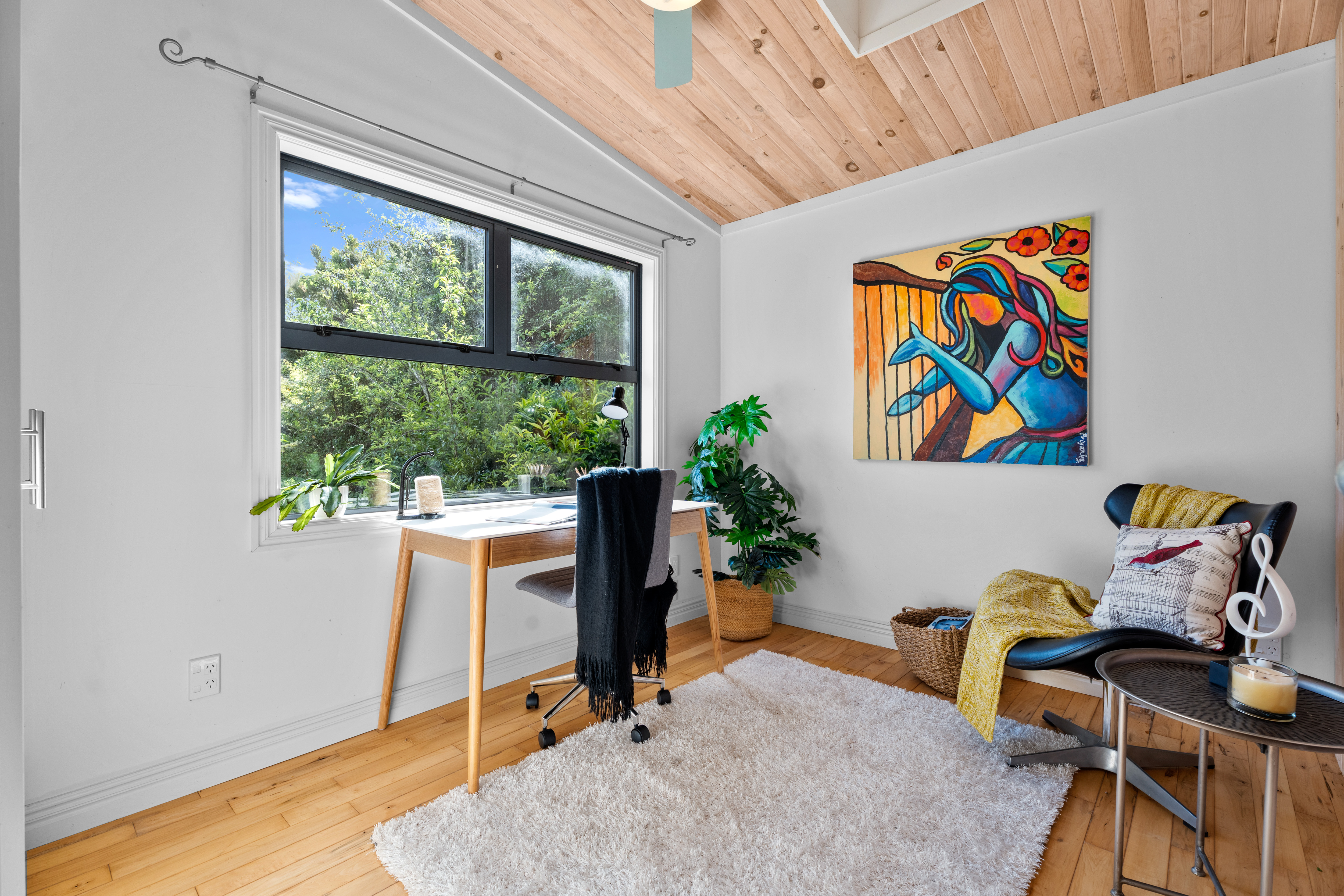 The open-plan living spills seamlessly onto expansive, sun-drenched decks, providing the ideal setting for long lunches, lazy afternoons and warm summer evenings. Surrounded by lush greenery, the outlook is beautifully private while staying conveniently close to Onetangi’s beach, cafés, and transport links.