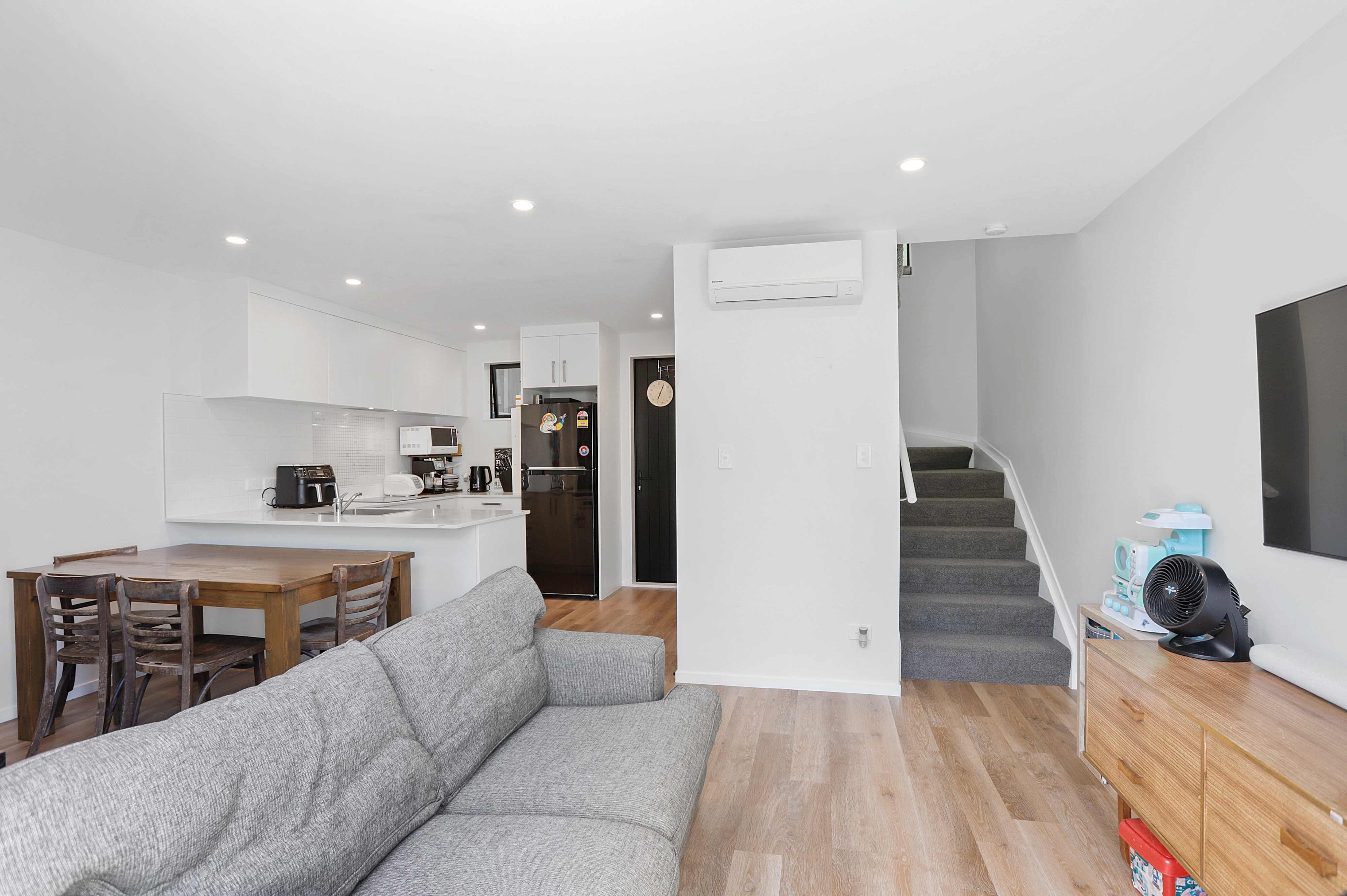 Upstairs you’ll find two generously sized bedrooms, both with wardrobes, plus a well-appointed bathroom – perfect for comfortable everyday living. Downstairs is light, open and modern, featuring an open-plan lounge, dining and kitchen area that flows effortlessly to your own front courtyard, ideal for morning coffees or entertaining friends.
