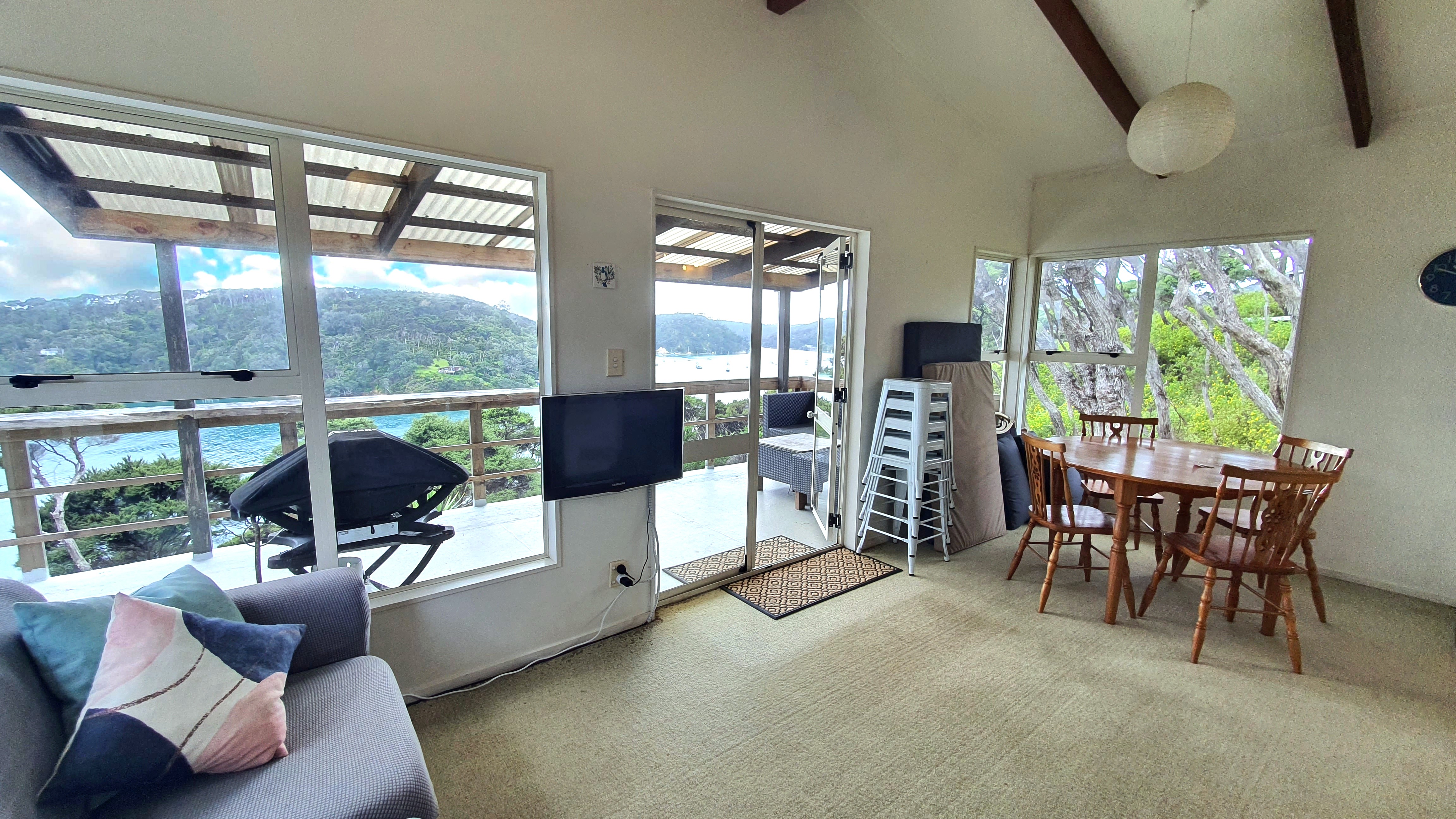 Facing due north for all-day sun, this much-loved family bach enjoys panoramic, grandstand views over North Cove, Kawau Bay and beyond, with spectacular sunsets that will stop you in your tracks. The huge bonus? A quality all-tide private wharf, making access easy for the Kawau ferry and boats of every shape and size.