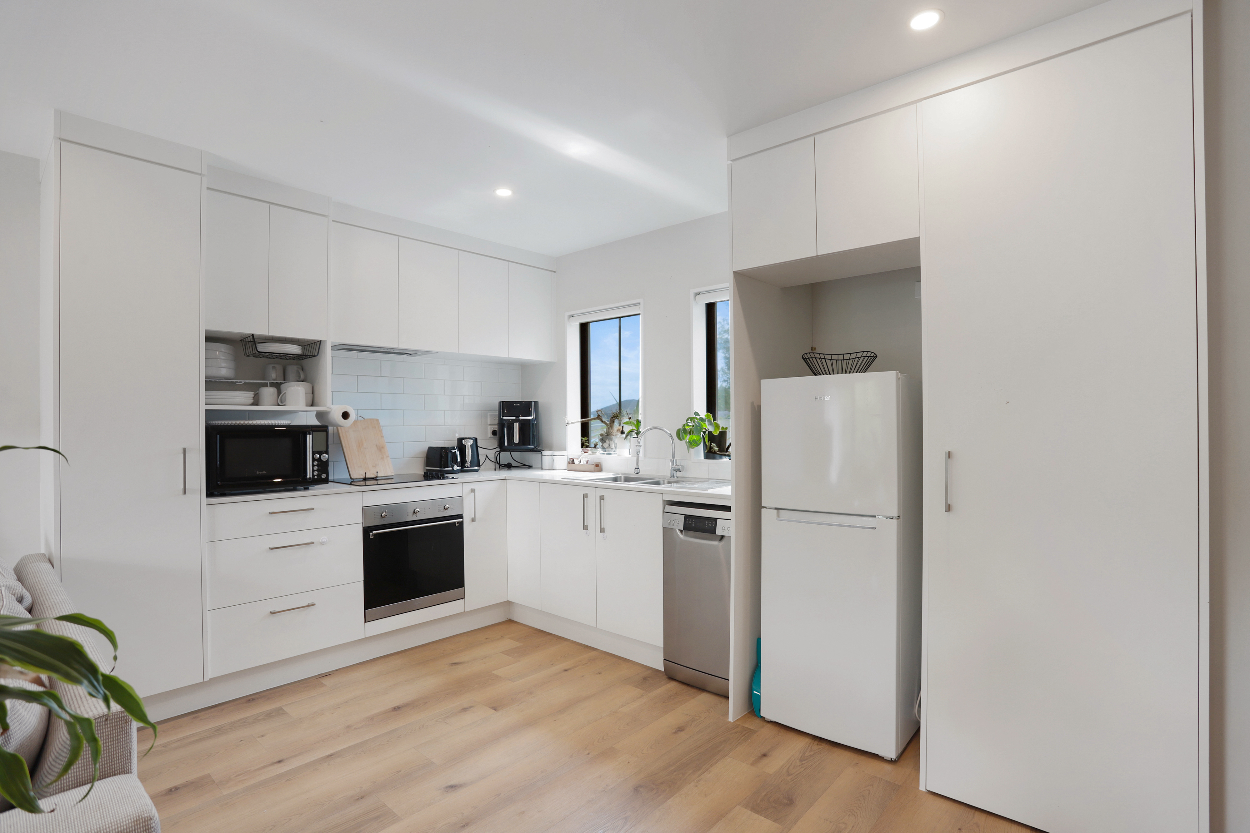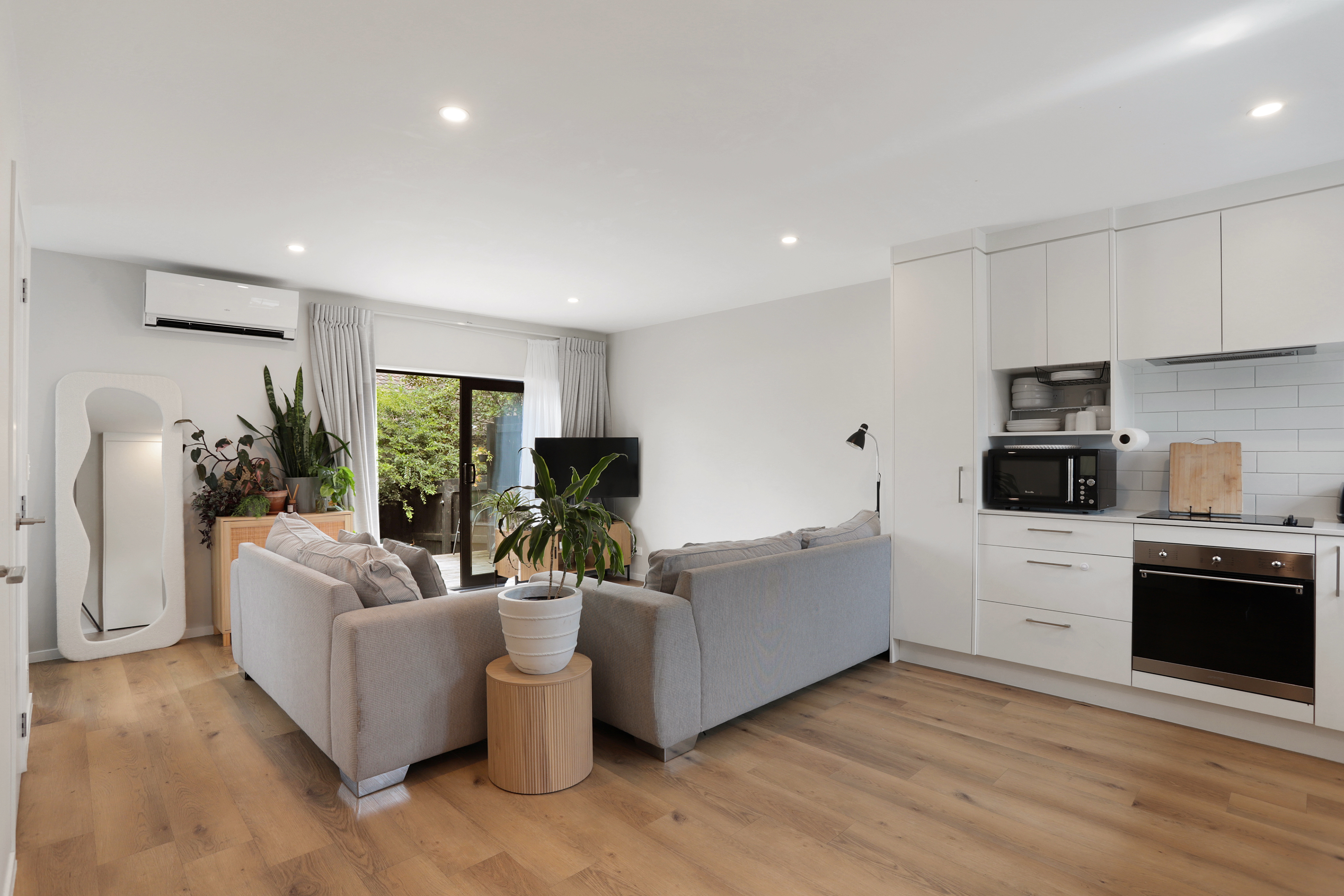 Downstairs offers a light-filled living and dining space that flows seamlessly to a quaint west-facing rear courtyard – the perfect spot for afternoon sun, and evening sunsets, relaxed entertaining, or unwinding at the end of the day. The kitchen is well positioned and practical, and the convenience of a second toilet on the lower level adds real day-to-day ease for guests and busy households alike.