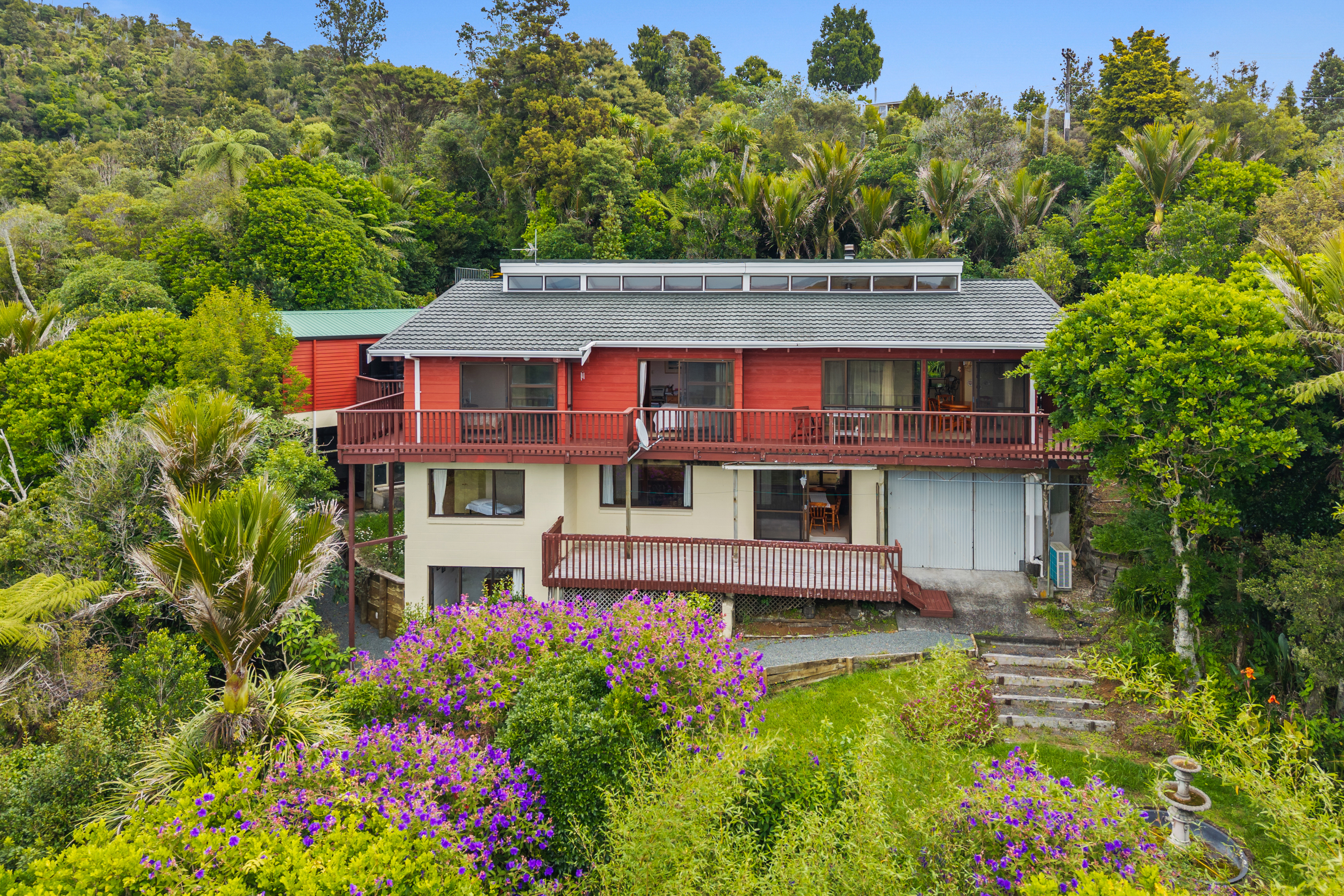 Set on a beautiful rural section surrounded by native bush, the home offers a true Waitākere Ranges lifestyle – peaceful, private, and immersed in nature.